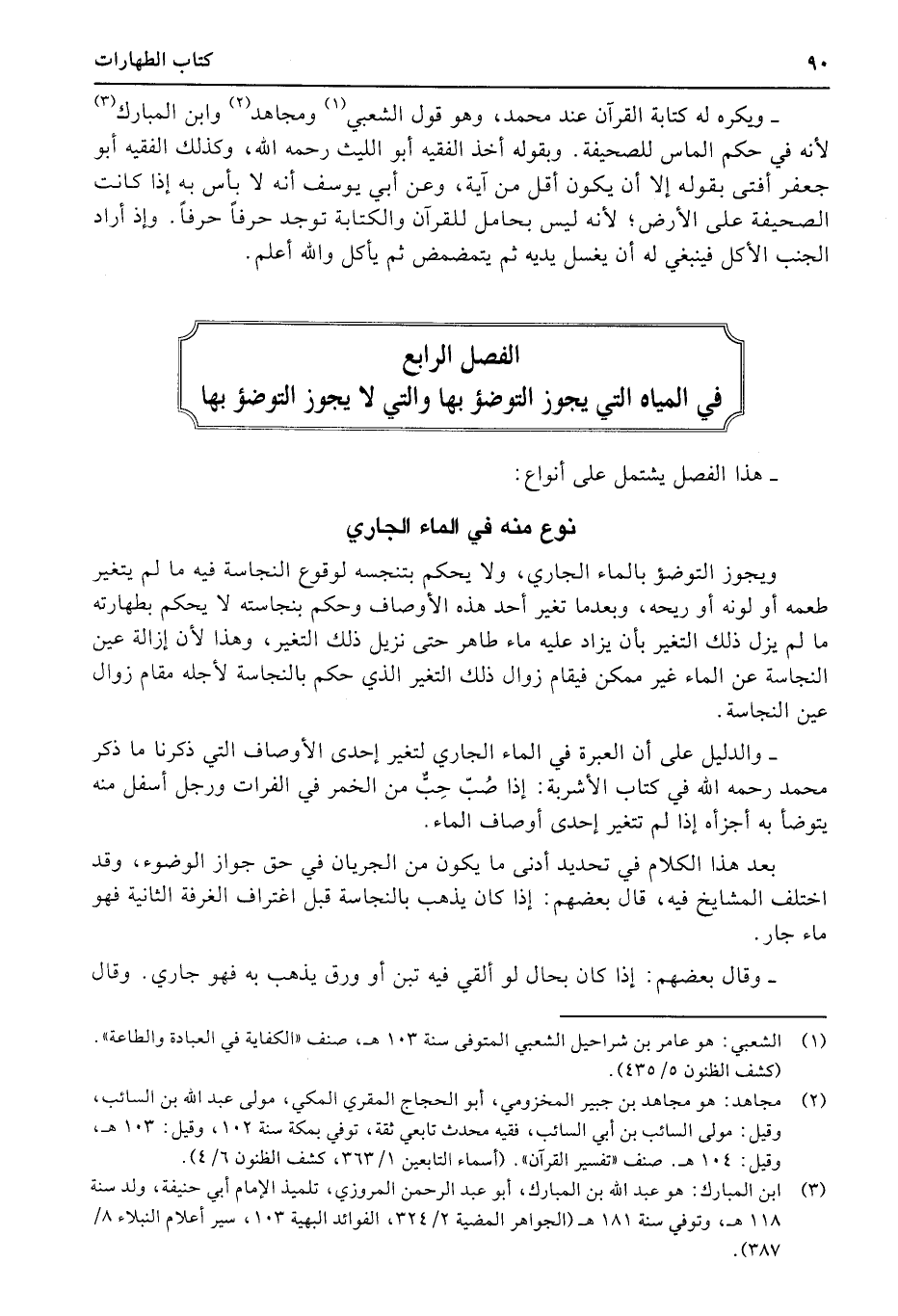 الفصل الرابع في المياه التي يجوز التوضؤ بها والتي لا يجوز التوضؤ بها