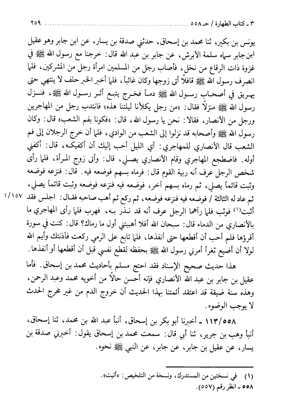 558 - أَخْبَرَنَا أَبُو بَكْرِ بْنُ إِسْحَاقَ، أَنْبَأَ عَبْدُ اللَّهِ بْنُ مُحَمَّدٍ، ثنا إِسْحَاقُ، أَنْبَأَ وَهْبُ بْنُ جَرِيرٍ، ثنا أَبِي، قَالَ: سَمِعْتُ مُحَمَّدَ بْنَ إِسْحَاقَ، يَقُولُ: أَخْبَرَنِي صَدَقَةُ بْنُ يَسَارٍ، عَنْ عَقِيلِ بْنِ جَابِرٍ، عَنْ جَابِرٍ، عَنِ النَّبِيِّ صَلَّى اللهُ عَلَيْهِ وَسَلَّمَ نَحْوَهُ، حَدَّثَنَا أَبُو الْعَبَّاسِ مُحَمَّدُ بْنُ يَعْقُوبَ، ثنا مُحَمَّدُ بْنُ عَلِيٍّ الْوَرَّاقُ لَقَبُهُ حَمْدَانُ، ثنا أَبُو يَحْيَى عَبْدُ الصَّمَدِ بْنُ حَسَّانَ الْمَرُّوذِيُّ، ثنا سُفْيَانُ بْنُ سَعِيدٍ، عَنْ عِكْرِمَةَ بْنِ عَمَّارٍ، وَأَخْبَرَنَا أَبُو بَكْرِ بْنُ إِسْحَاقَ الْفَقِيهُ، وَاللَّفْظُ لَهُ، أَنْبَأَ عَلِيُّ بْنُ عَبْدِ الْعَزِيزِ، ثنا مُحَمَّدُ بْنُ عَبْدِ اللَّهِ بْنِ عَمَّارٍ، ثنا قَاسِمُ بْنُ يَزِيدَ الْجَرْمِيُّ، ثنا سُفْيَانُ، عَنْ عِكْرِمَةَ بْنِ عَمَّارٍ، عَنْ يَحْيَى بْنِ أَبِي كَثِيرٍ، عَنْ عِيَاضٍ، عَنْ أَبِي سَعِيدٍ الْخُدْرِيِّ، قَالَ: §«نَهَى رَسُولُ اللَّهِ صَلَّى اللهُ عَلَيْهِ وَسَلَّمَ الْمُتَغَوِّطَيْنِ أَنْ يَتَحَدَّثَا، فَإِنَّ اللَّهَ يَمْقُتُ عَلَى ذَلِكَ»
