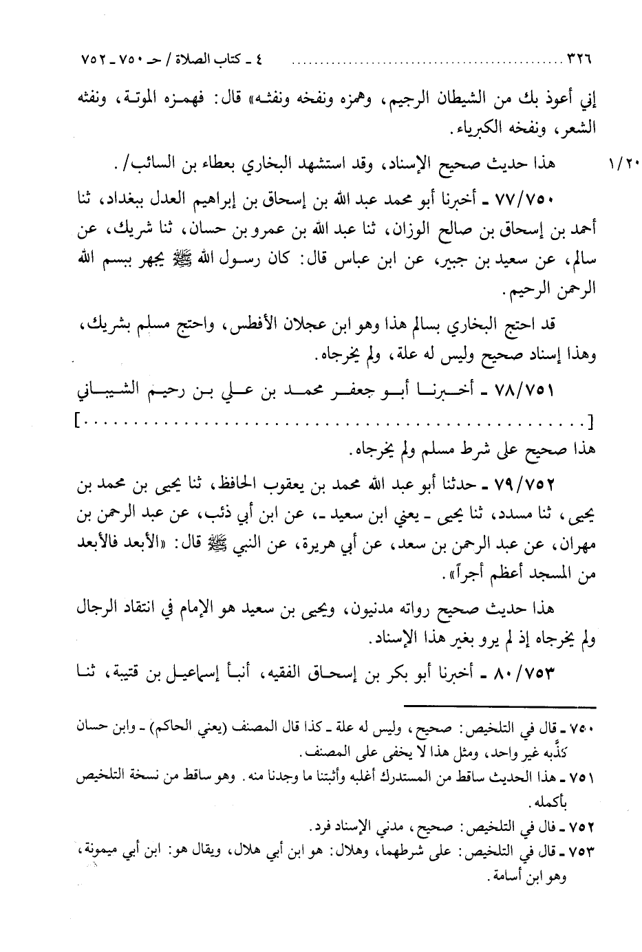 752 - حَدَّثَنَا أَبُو عَبْدِ اللَّهِ مُحَمَّدُ بْنُ يَعْقُوبَ الْحَافِظُ، ثنا يَحْيَى بْنُ مُحَمَّدِ بْنِ يَحْيَى، ثنا مُسَدَّدٌ، ثنا يَحْيَى يَعْنِي ابْنَ سَعِيدٍ، عَنِ ابْنِ أَبِي ذِئْبٍ، عَنْ عَبْدِ الرَّحْمَنِ بْنِ مِهْرَانَ، عَنْ عَبْدِ الرَّحْمَنِ بْنِ سَعْدٍ، عَنْ أَبِي هُرَيْرَةَ، عَنِ النَّبِيِّ صَلَّى اللهُ عَلَيْهِ وَسَلَّمَ، قَالَ: §«الْأَبْعَدُ فَالْأَبْعَدُ مِنَ الْمَسْجِدِ أَعْظَمُ أَجْرًا» . «هَذَا حَدِيثٌ صَحِيحٌ رُوَاتُهُ مَدَنِيُّونَ، وَيَحْيَى بْنُ سَعِيدٍ هُوَ الْإِمَامُ فِي انْتِقَادِ الرِّجَالِ، وَلَمْ يُخَرِّجَاهُ إِذْ لَمْ يُرْوَ بِغَيْرِ هَذَا الْإِسْنَادِ» K752 - صحيح