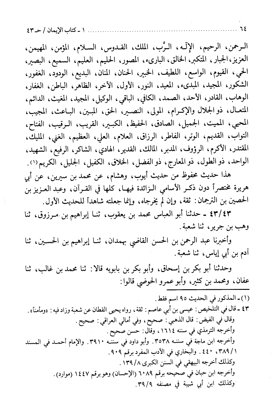 43 - حَدَّثَنَا أَبُو الْعَبَّاسِ مُحَمَّدُ بْنُ يَعْقُوبَ، ثنا إِبْرَاهِيمُ بْنُ مَرْزُوقٍ، ثنا وَهْبُ بْنُ جَرِيرٍ، ثنا شُعْبَةُ، وَأَخْبَرَنَا عَبْدُ الرَّحْمَنِ بْنُ الْحَسَنِ الْقَاضِي، بِهَمْدَانَ، ثنا إِبْرَاهِيمُ بْنُ الْحُسَيْنِ، ثنا آدَمُ بْنُ أَبِي إِيَاسٍ، ثنا شُعْبَةُ، وَحَدَّثَنَا أَبُو بَكْرِ بْنُ إِسْحَاقَ، وَأَبُو بَكْرِ بْنُ بَابَوَيْهِ قَالَا: ثنا مُحَمَّدُ بْنُ غَالِبٍ، ثنا عَفَّانُ، وَمُحَمَّدُ بْنُ كَثِيرٍ، وَأَبُو عُمَرَ الْحَوْضِيُّ، قَالُوا: ثنا شُعْبَةُ، أَخْبَرَنِي سَلَمَةُ بْنُ كُهَيْلٍ، قَالَ: سَمِعْتُ عِيسَى، - رَجُلًا مِنْ بَنِي أَسَدٍ - يُحَدِّثُ، عَنْ زِرٍّ، عَنْ عَبْدِ اللَّهِ، عَنِ النَّبِيِّ صَلَّى اللهُ عَلَيْهِ وَسَلَّمَ، قَالَ: «§الطِّيَرَةُ شِرْكٌ، وَلَكِنَّ اللَّهَ عَزَّ وَجَلَّ يُذْهِبُهُ بِالتَّوَكُّلِ» . " وَعِيسَى هَذَا هُوَ: ابْنُ عَاصِمٍ الْأَسَدِيُّ كُوفِيٌّ ثِقَةٌ "K43 - عيسى بن أبي عاصم ثقة