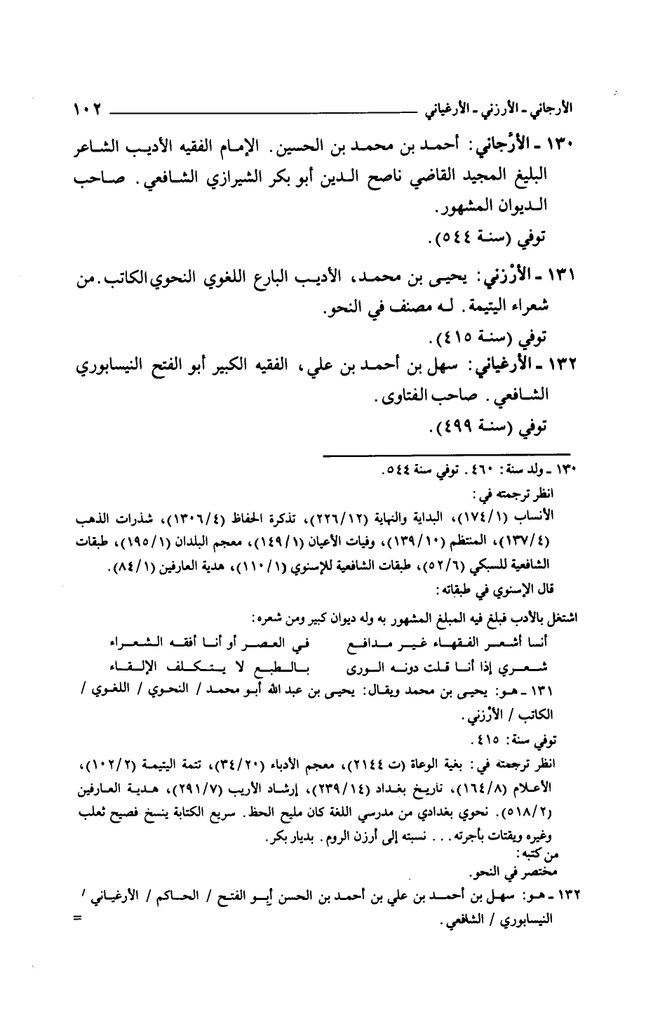 الأرزني: يحيى بن محمد، الأديب البارع اللغوي النحوي الكاتب. من شعراء اليتيمة. له مصنف في النحو.