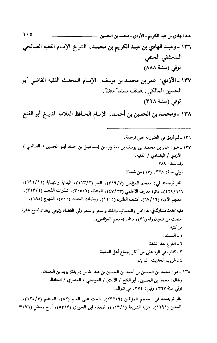 الأزدي: عمر بن محمد بن يوسف. الإمام المحدث الفقيه القاضي أبو الحسين المالكي. صنف مسنداً متقناً.