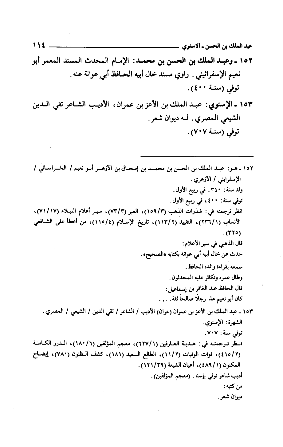 وعبد الملك بن الحسن بن محمد: الإمام المحدث المسند المعمر أبو نعيم الإسفرائيني. راوي مسند خال أبيه الحافظ أبي عوانة عنه.