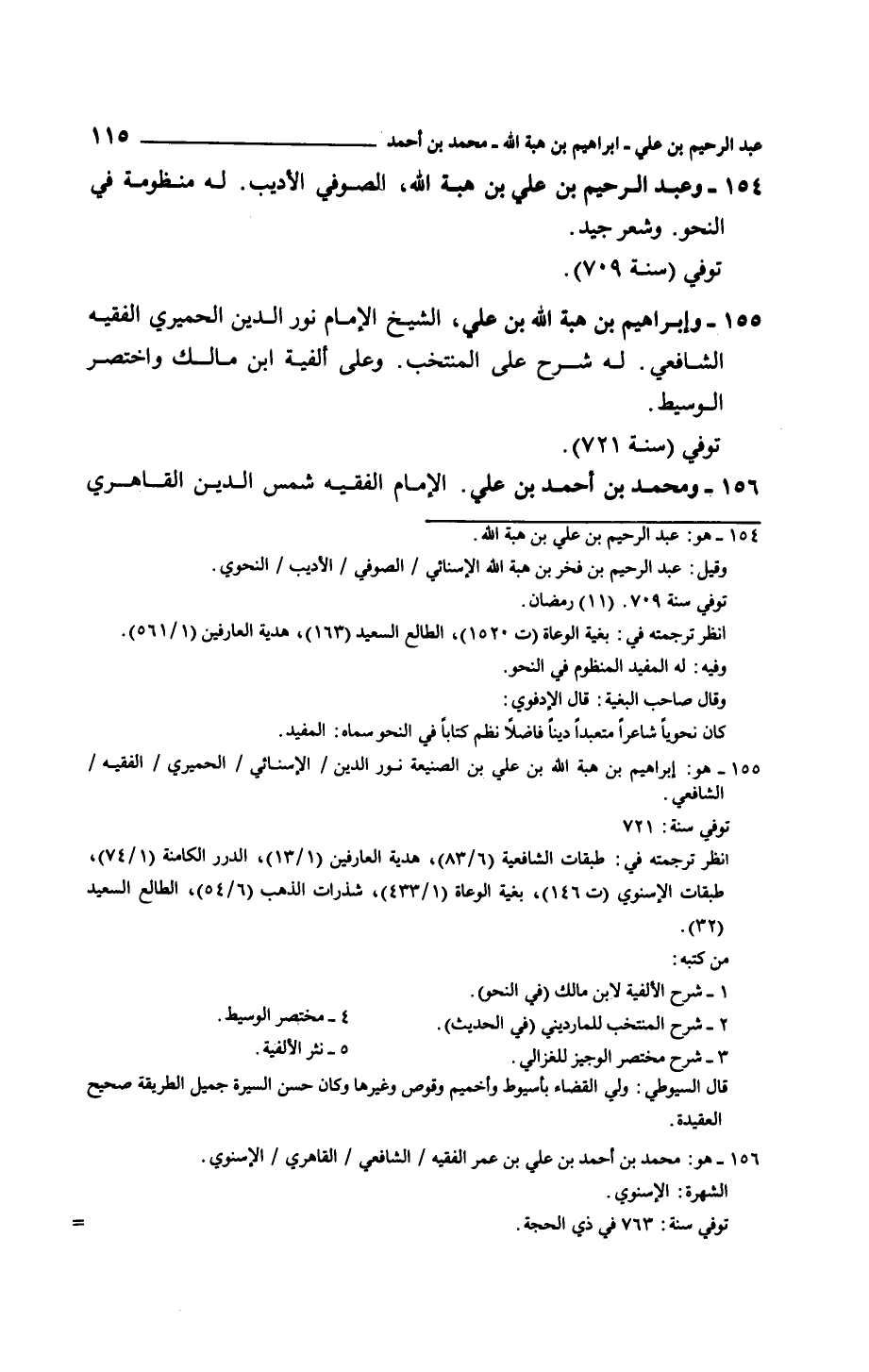 وإبراهيم بن هبة الله بن علي، الشيخ الإمام نور الدين الحميري الفقيه الشافعي. له شرح على المنتخب. وعلى ألفية ابن مالك واختصر الوسيط.