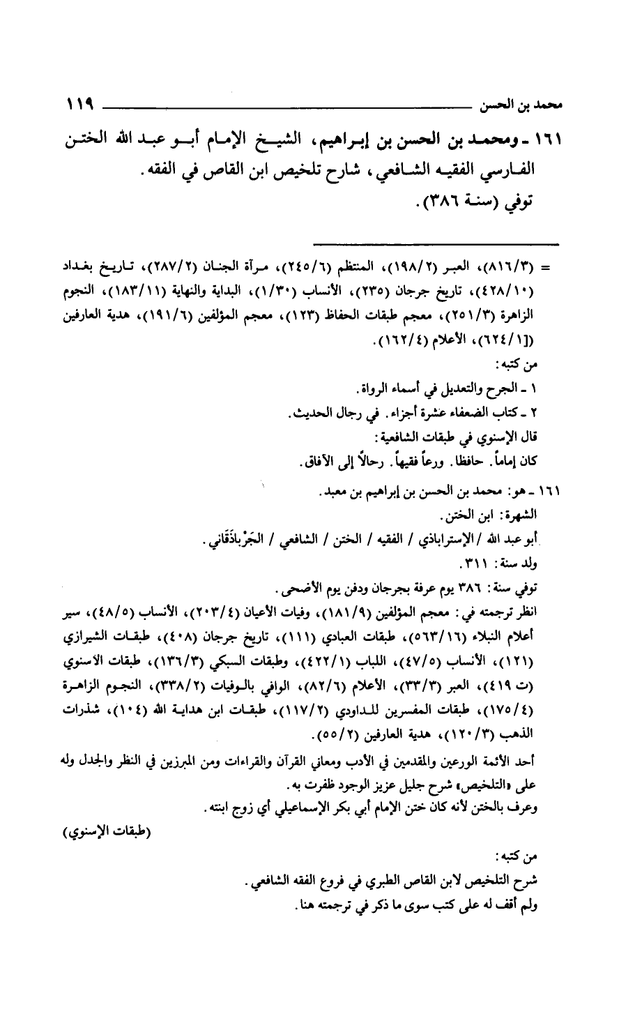 ومحمد بن الحسن بن إبراهيم، الشيخ الإمام أبو عبد الله الختن الفارسي الفقيه الشافعي، شارح تلخيص ابن القاص في الفقه.