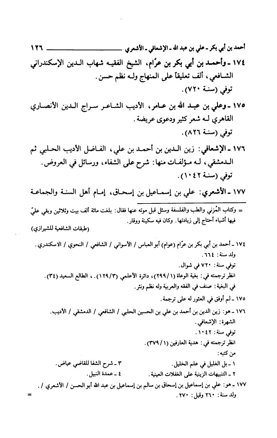 الإشعافي: زين الدين بن أحمد بن علي، الفاضل الأديب الحلبي ثم الدمشقي، له مؤلفات منها: شرح على الشفاء، ورسائل في العروض.