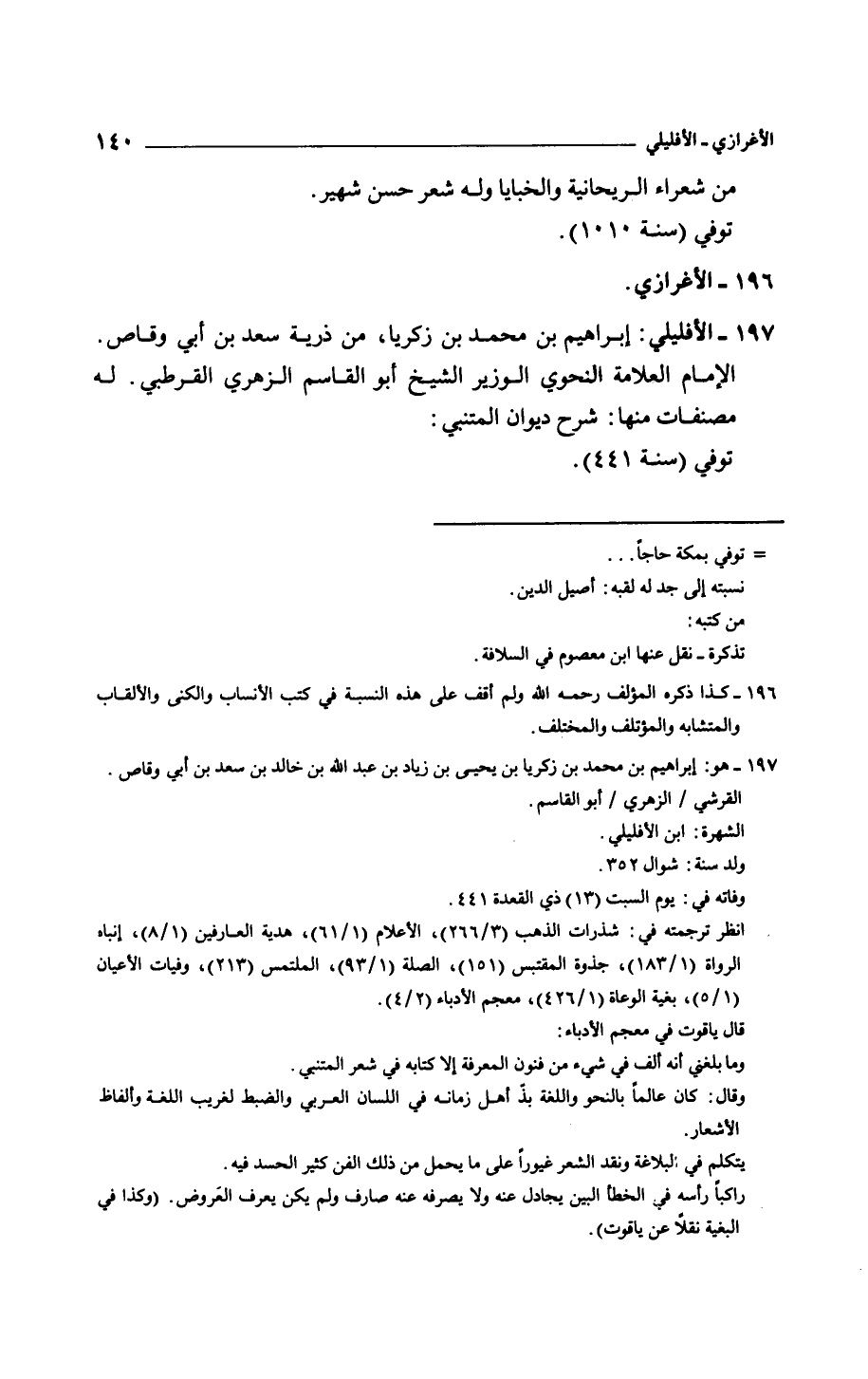الأفليلي: إبراهيم بن محمد بن زكريا، من ذرية سعد بن أبي وقاص.