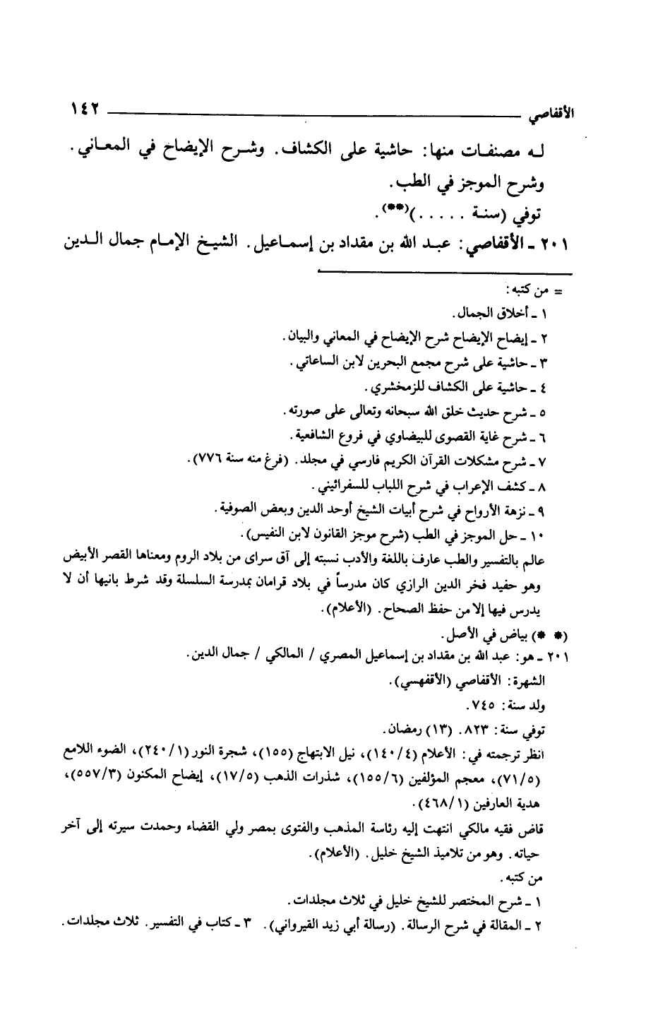 الأقفاصي: عبد الله بن مقداد بن إسماعيل. الشيخ الإمام جمال الدين