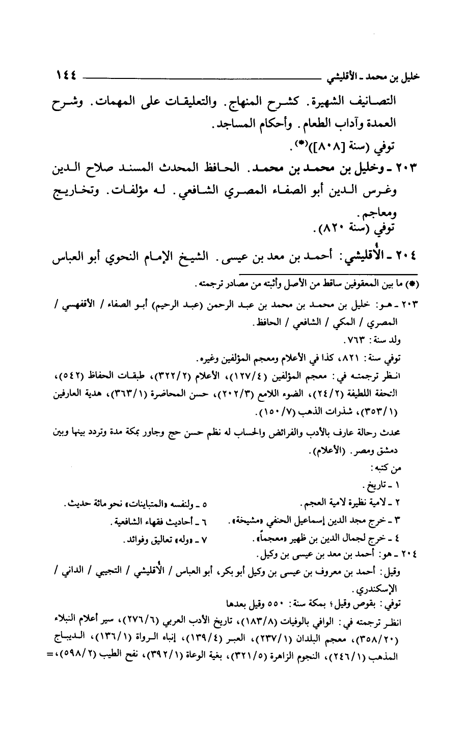 وخليل بن محمد بن محمد. الحافظ المحدث المسند صلاح الدين وغرس الدين أبو الصفاء المصري الشافعي. له مؤلفات. وتخاريج ومعاجم.
