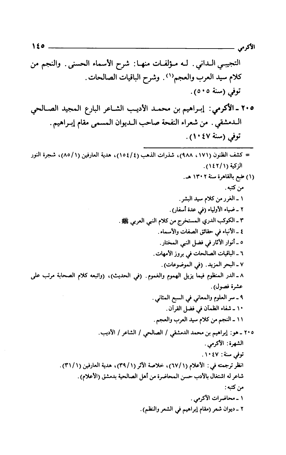 الأكرمي: إبراهيم بن محمد الأديب الشاعر البارع المجيد الصالحي الدمشقي. من شعراء النفحة صاحب الديوان المسمى مقام إبراهيم.