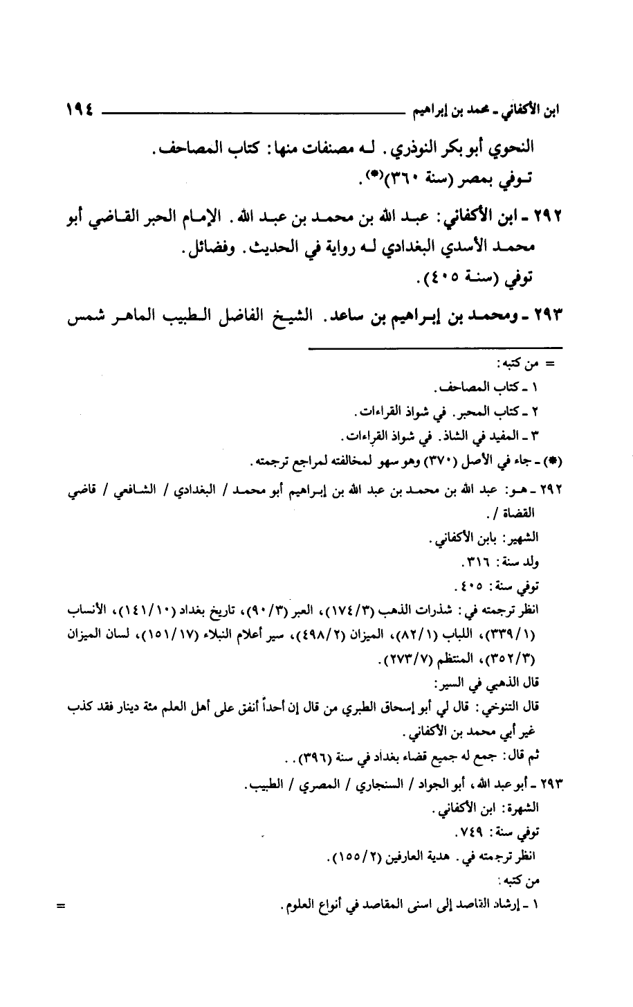 ابن الأكفاني: عبد الله بن محمد بن عبد الله. الإمام الحبر القاضي أبو محمد الأسدي البغدادي له رواية في الحديث. وفضائل.