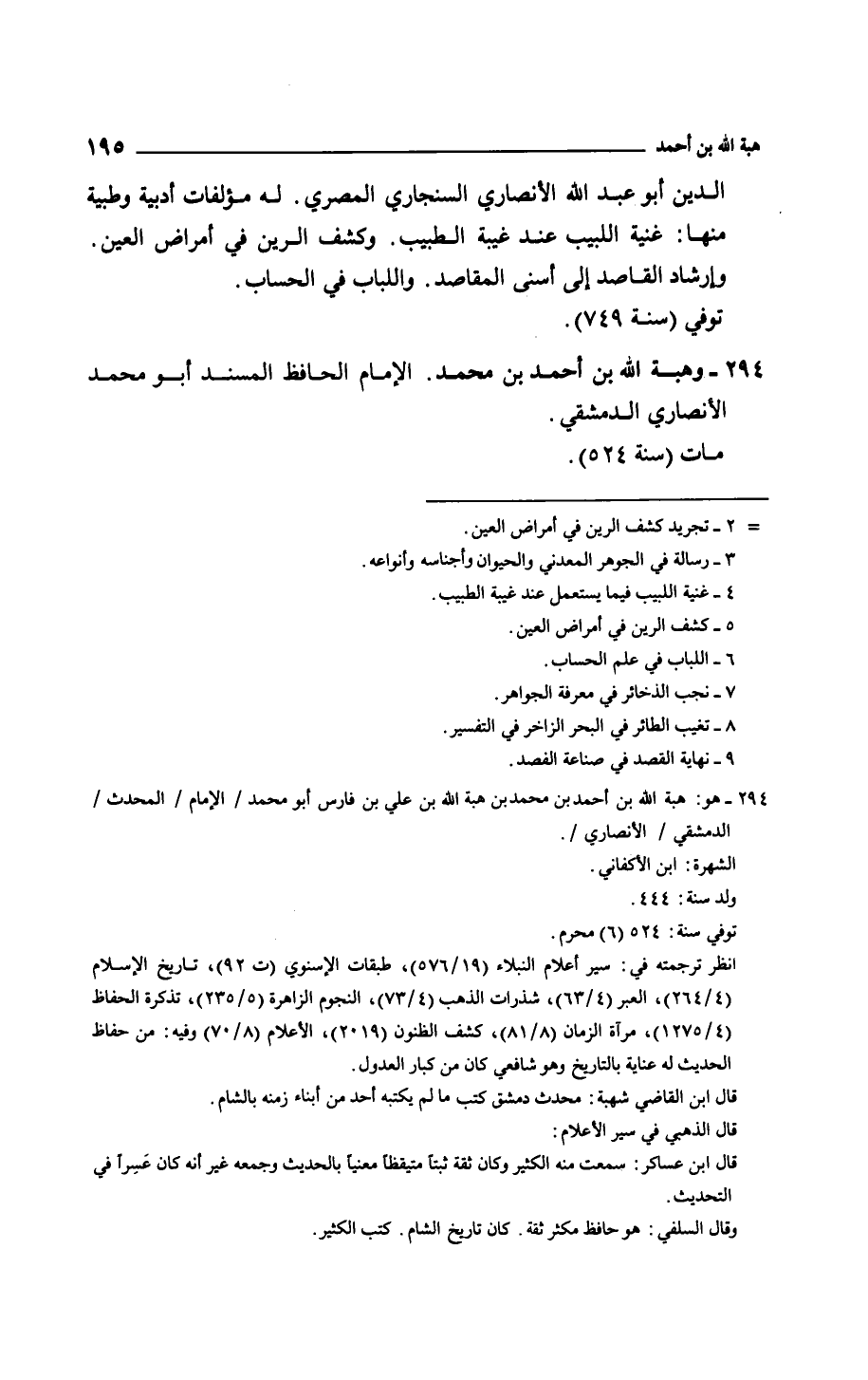 وهبة الله بن أحمد بن محمد. الإمام الحافظ المسند أبو محمد الأنصاري الدمشقي.