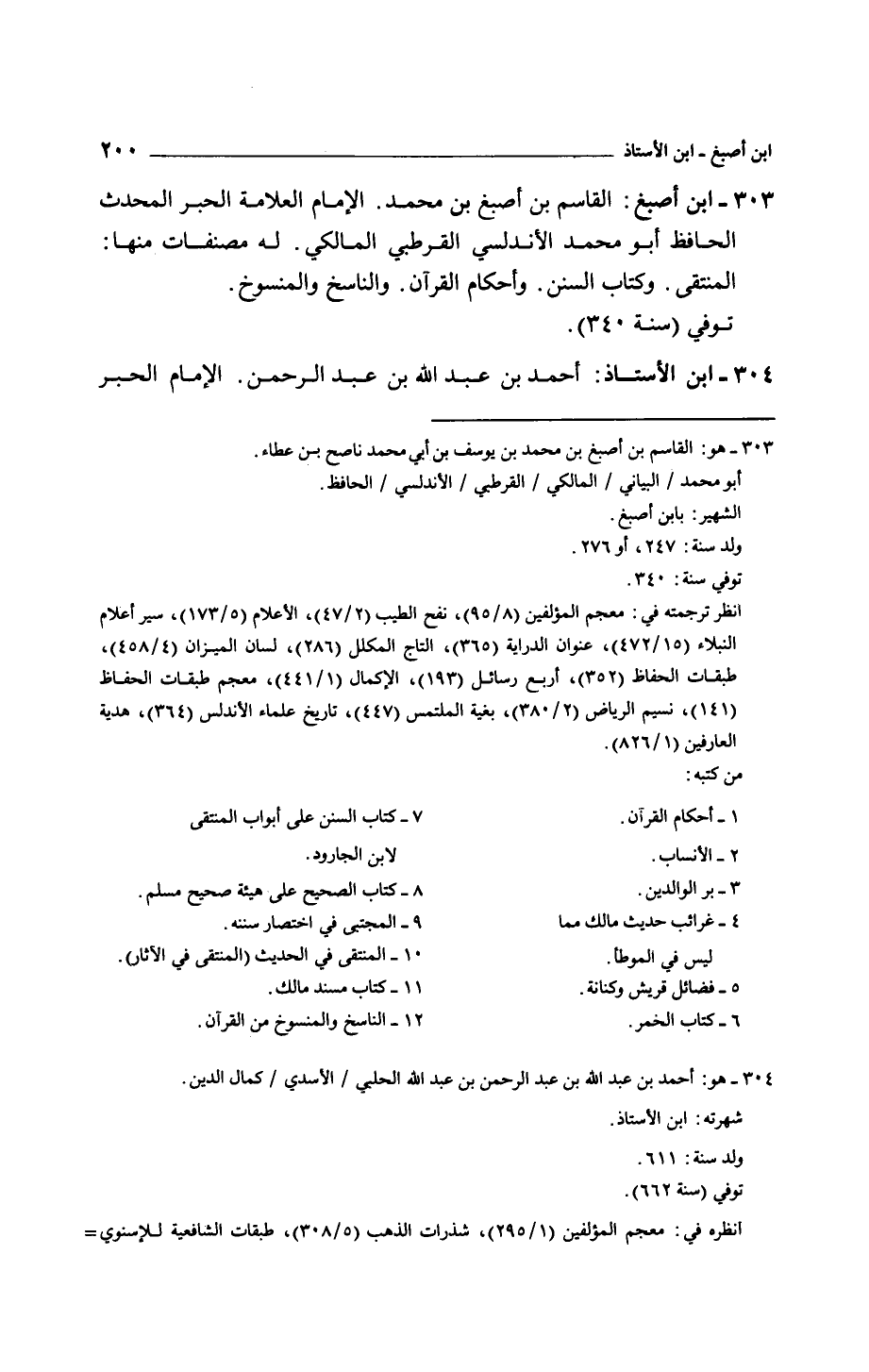 ابن أصبغ: القاسم بن أصبغ بن محمد. الإمام العلامة الحبر المحدث الحافظ أبو محمد الأندلسي القرطبي المالكي. له مصنفات منها: المنتقى. وكتاب السنن. وأحكام القرآن. والناسخ والمنسوخ.