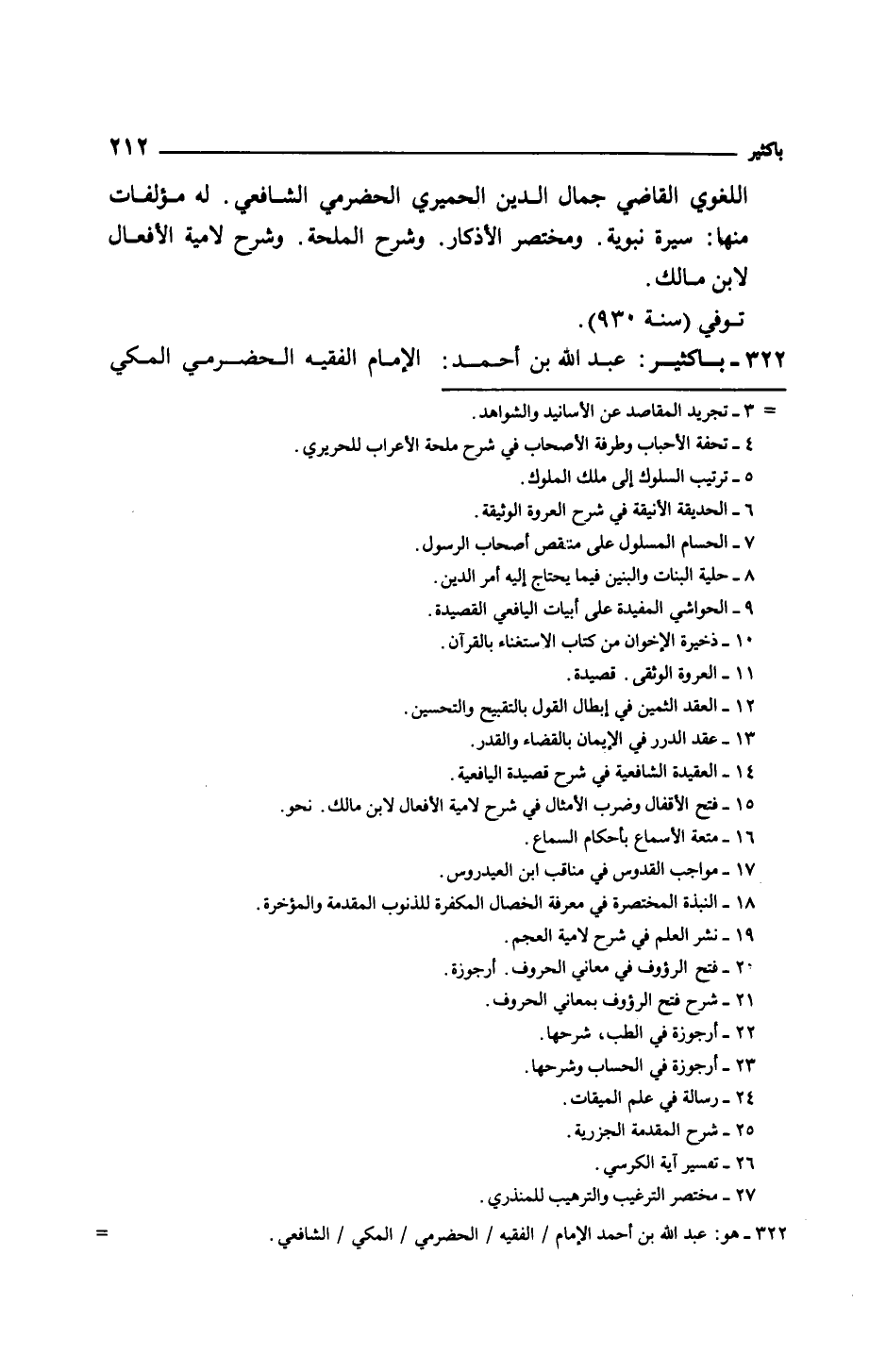 باكثير: عبد الله بن أحمد: الإمام الفقيه الحضرمي المكي