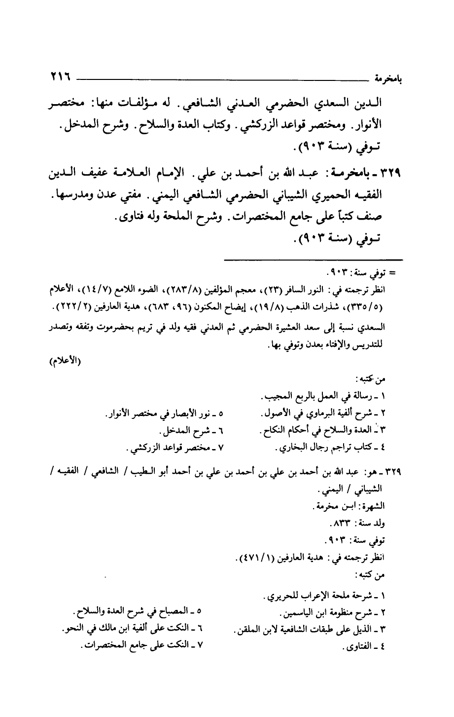 بامخرمة: عبد الله بن أحمد بن علي. الإمام العلامة عفيف الدين الفقيه الحميري الشيباني الحضرمي الشافعي اليمني. مفتي عدن ومدرسها صنف كتباً على جامع المختصرات. وشرح الملحة وله فتاوى.