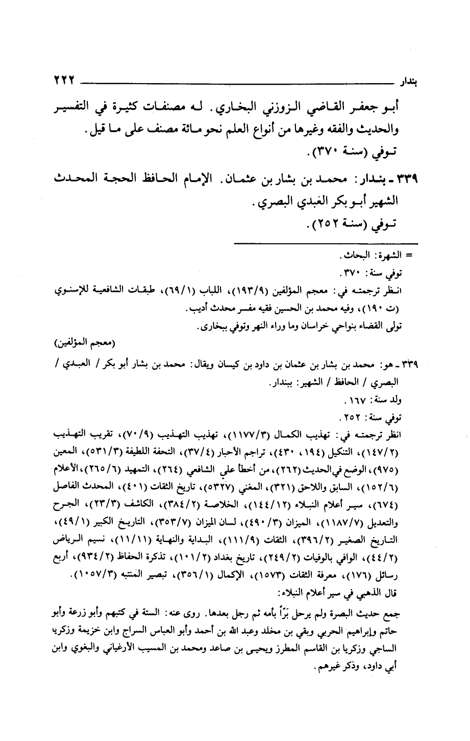 بندار: محمد بن بشار بن عثمان. الإمام الحافظ الحجة المحدث الشهير أبو بكر العبدي البصري.