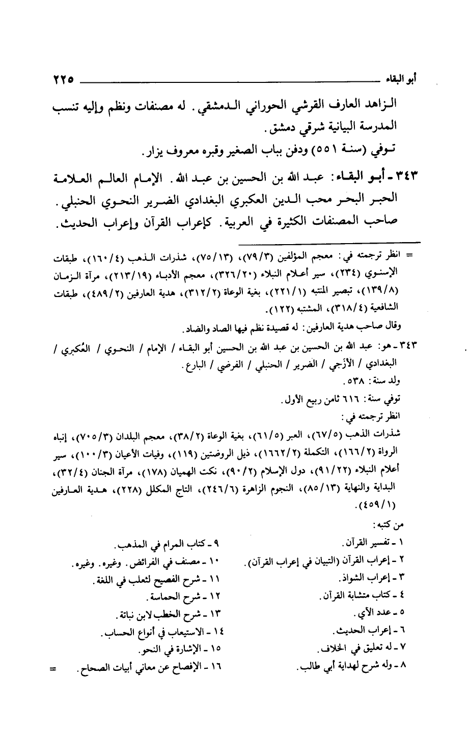 أبو البقاء: عبد الله بن الحسين بن عبد الله. الإمام العالم العلامة الحبر البحر محب الدين العكبري البغدادي الضرير النحوي الحنبلي. صاحب المصنفات الكثيرة في العربية. كإعراب القرآن وإعراب الحديث.