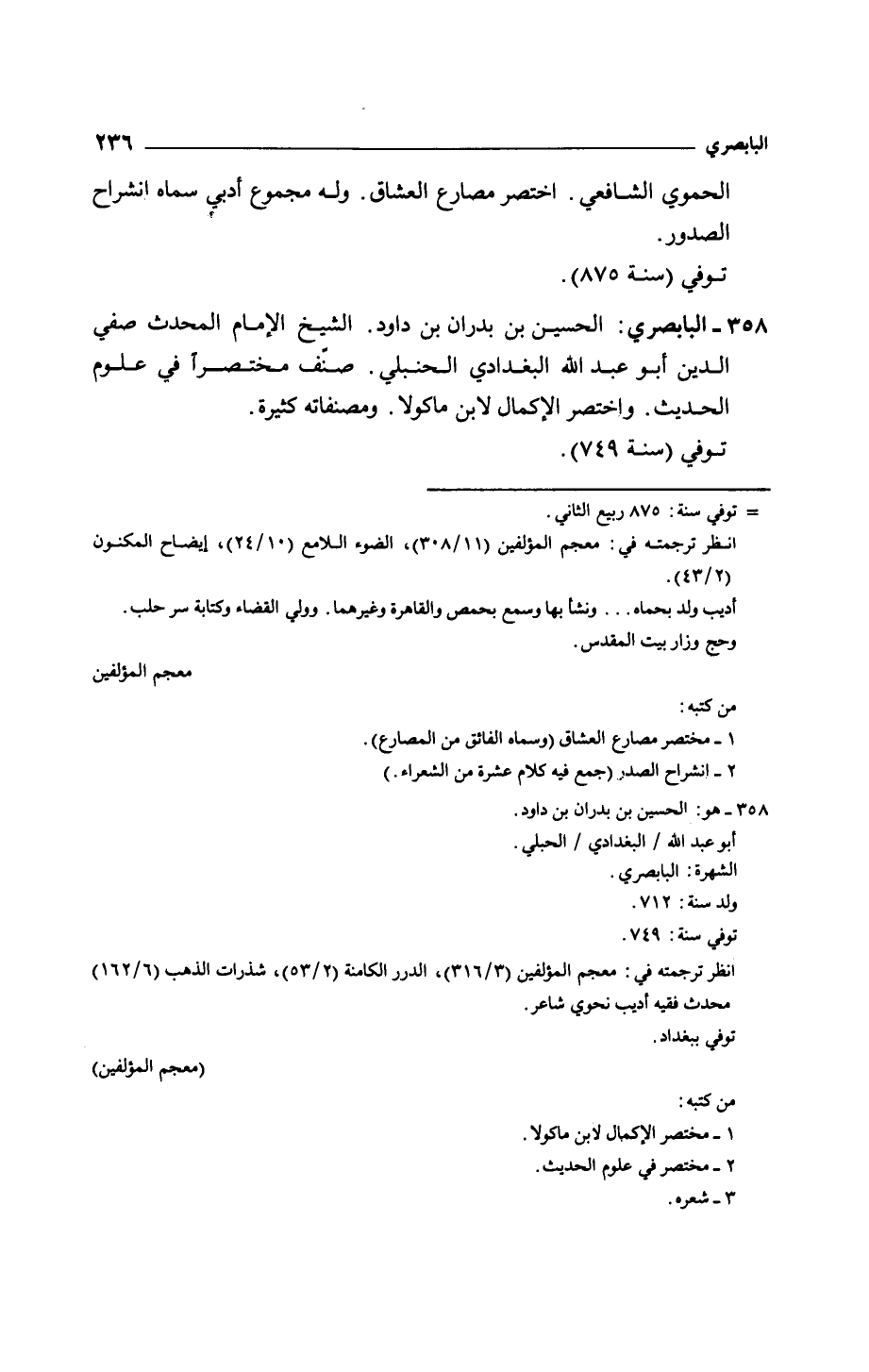 البابصري: الحسين بن بدران بن داود. الشيخ الإمام المحدث صفي الدين أبو عبد الله البغدادي الحنبلي. صنف مختصراً في علوم الحديث. واختصر الإكمال لابن ماكولا. ومصنفاته كثيرة.