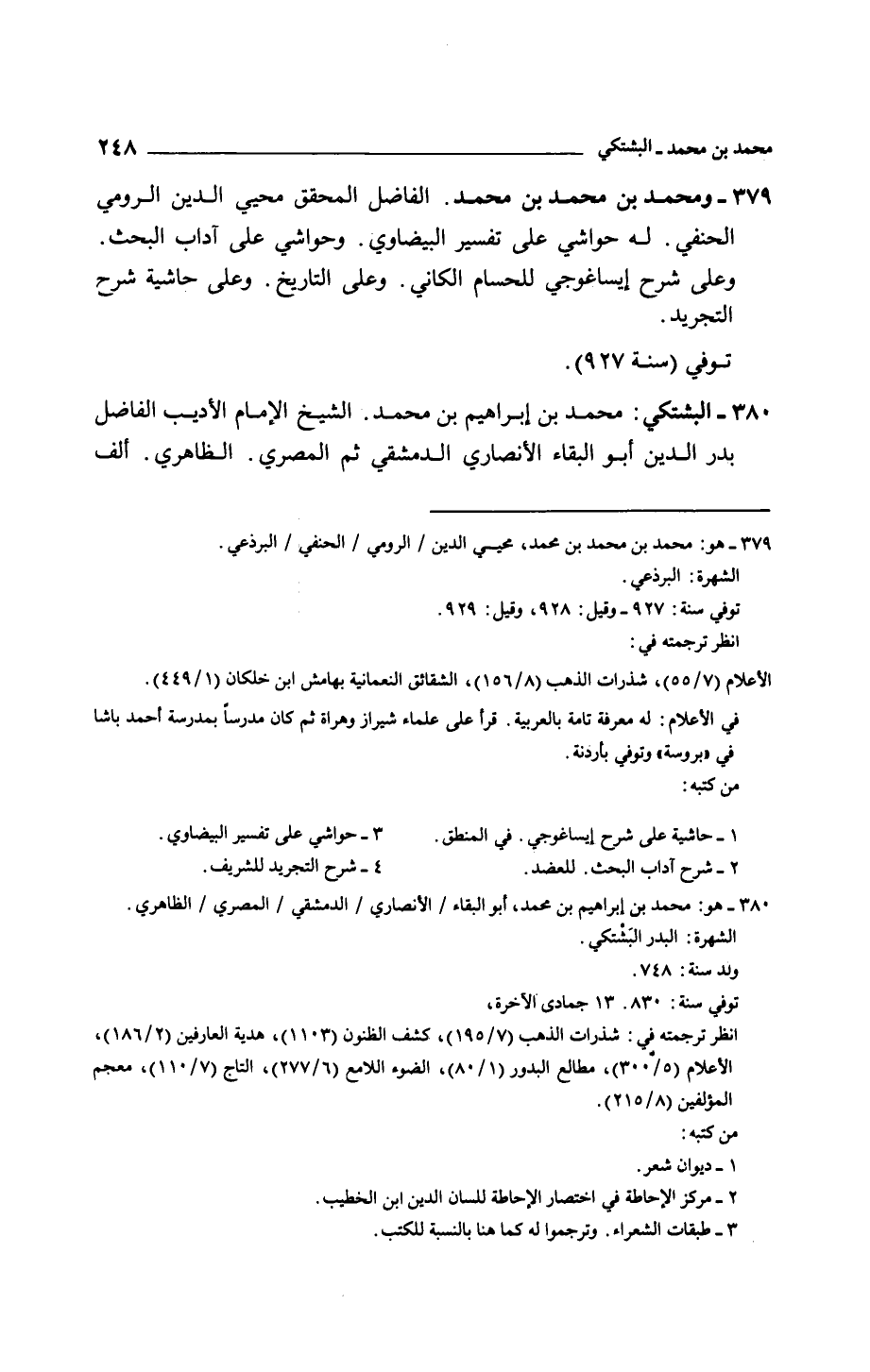ومحمد بن محمد بن محمد. الفاضل المحقق محيي الدين الرومي الحنفي. له حواشي على تفسير البيضاوي. وحواشي على آداب البحث. وعلى شرح إيساغوجي للحسام الكاني. وعلى التاريخ. وعلى حاشية شرح التجريد.