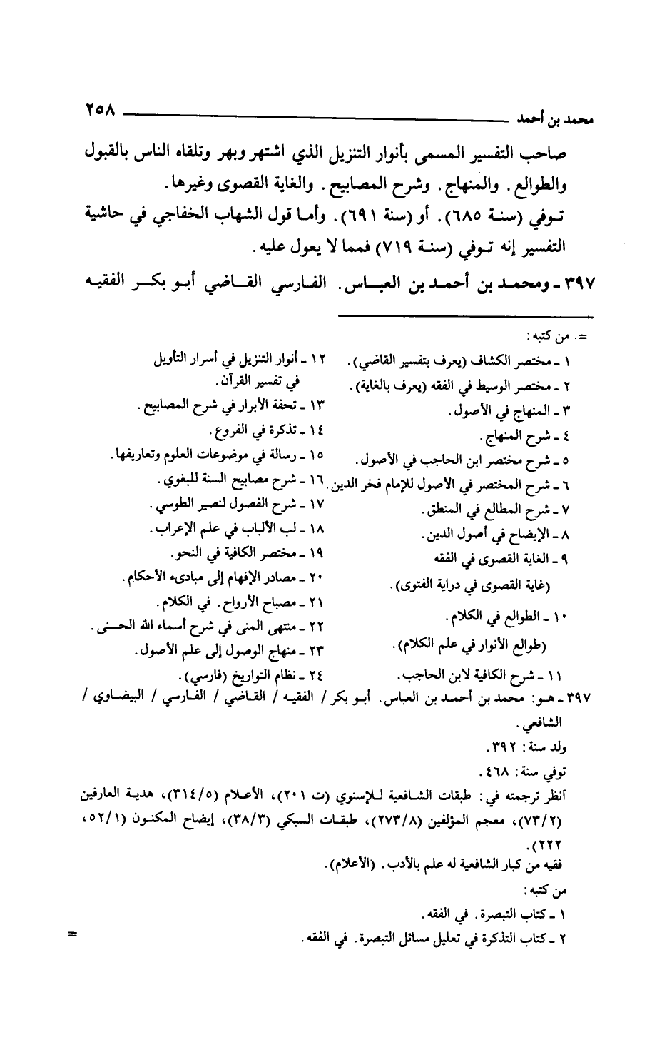 ومحمد بن أحمد بن العباس. الفارسي القاضي أبو بكر الفقيه