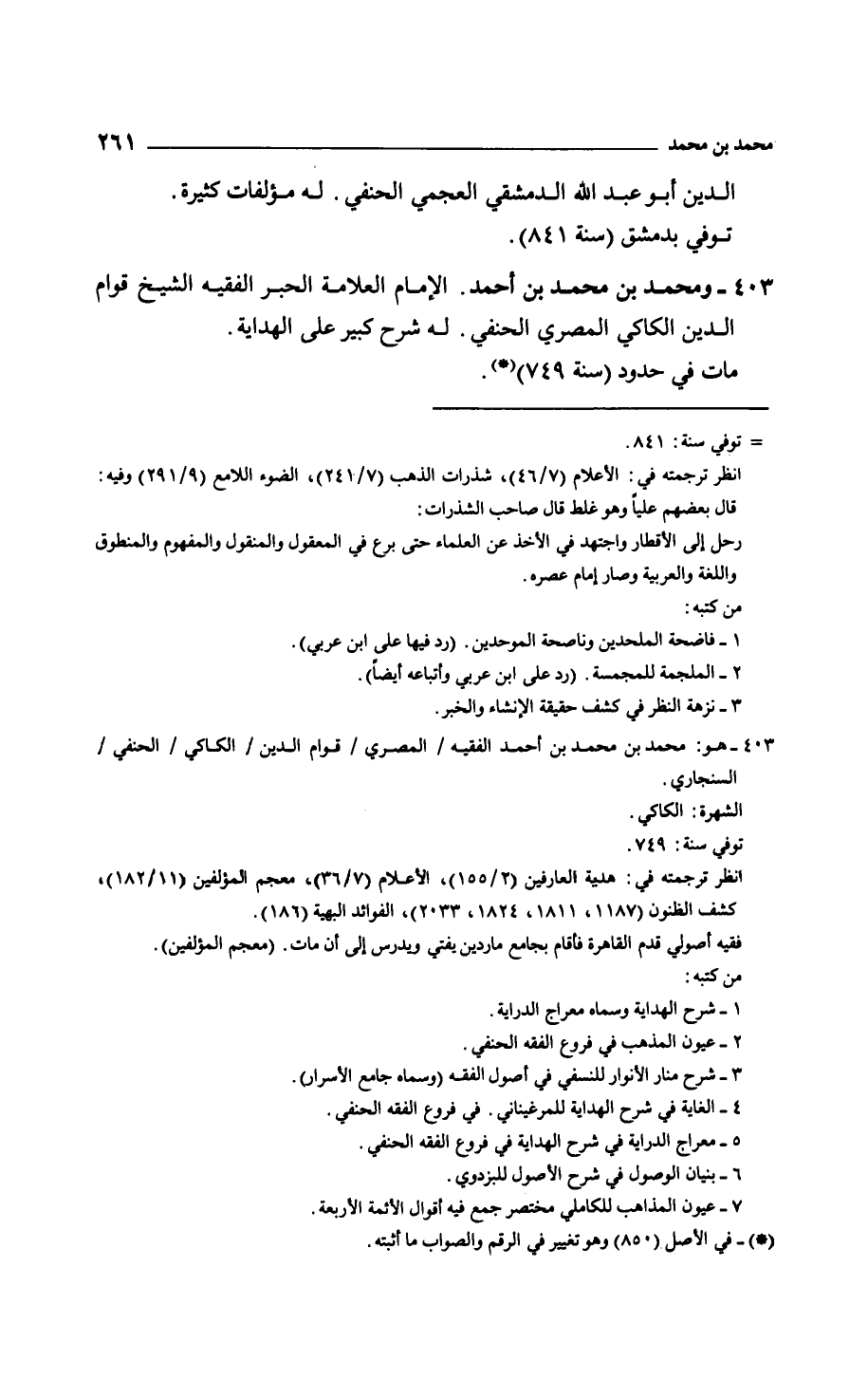 ومحمد بن محمد بن أحمد. الإمام العلامة الحبر الفقيه الشيخ قوام الدين الكاكي المصري الحنفي. له شرح كبير على الهداية.