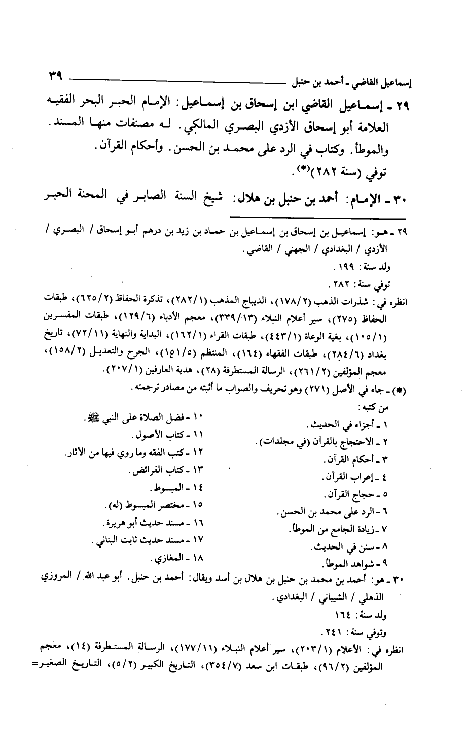 إسماعيل القاضي ابن إسحاق بن إسماعيل: الإمام الحبر الفقيه العلامة أبو إسحاق الأزدي البصري المالكي. له مصنفات منها المسند. والموطأ. وكتاب في الرد على محمد بن الحسن. وأحكام القرآن.