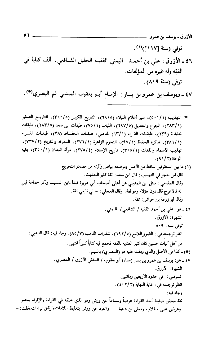 الأزرق: علي بن أحمد. اليمني الفقيه الجليل الشافعي. ألف كتاباً في الفقه وله غيره من المؤلفات.