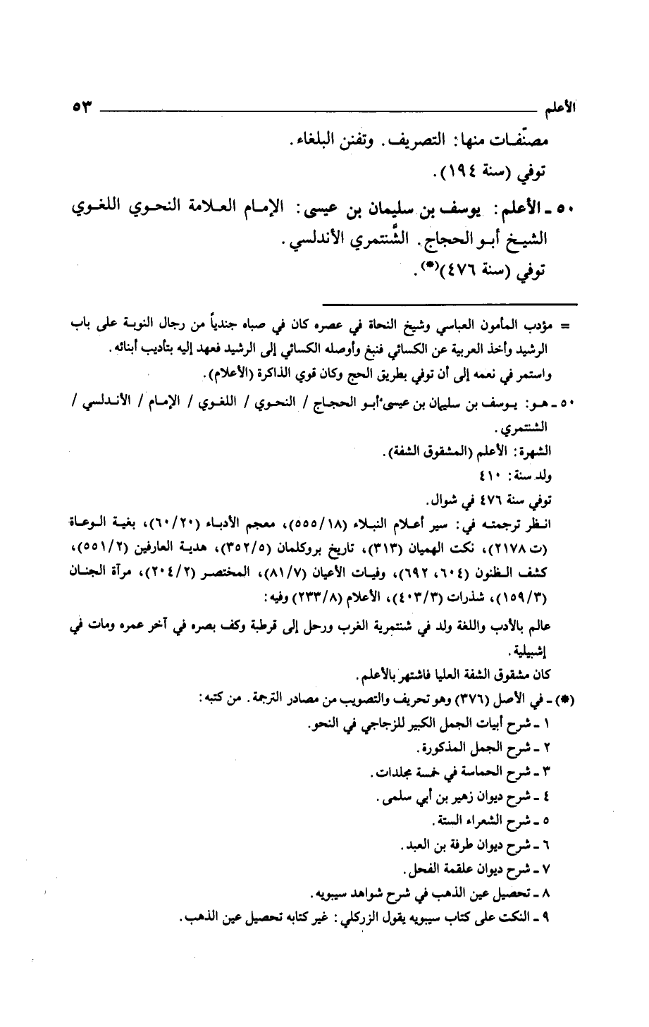 الأعلم: يوسف بن سليمان بن عيسى: الإمام العلامة النحوي اللغوي الشيخ أبو الحجاج. الشنتمري الأندلسي.