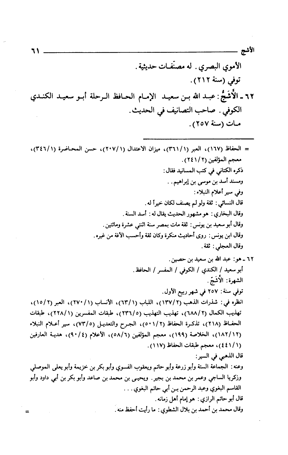 الأشج: عبد الله بن سعيد الإمام الحافظ الرحلة أبو سعيد الكندي الكوفي. صاحب التصانيف في الحديث.