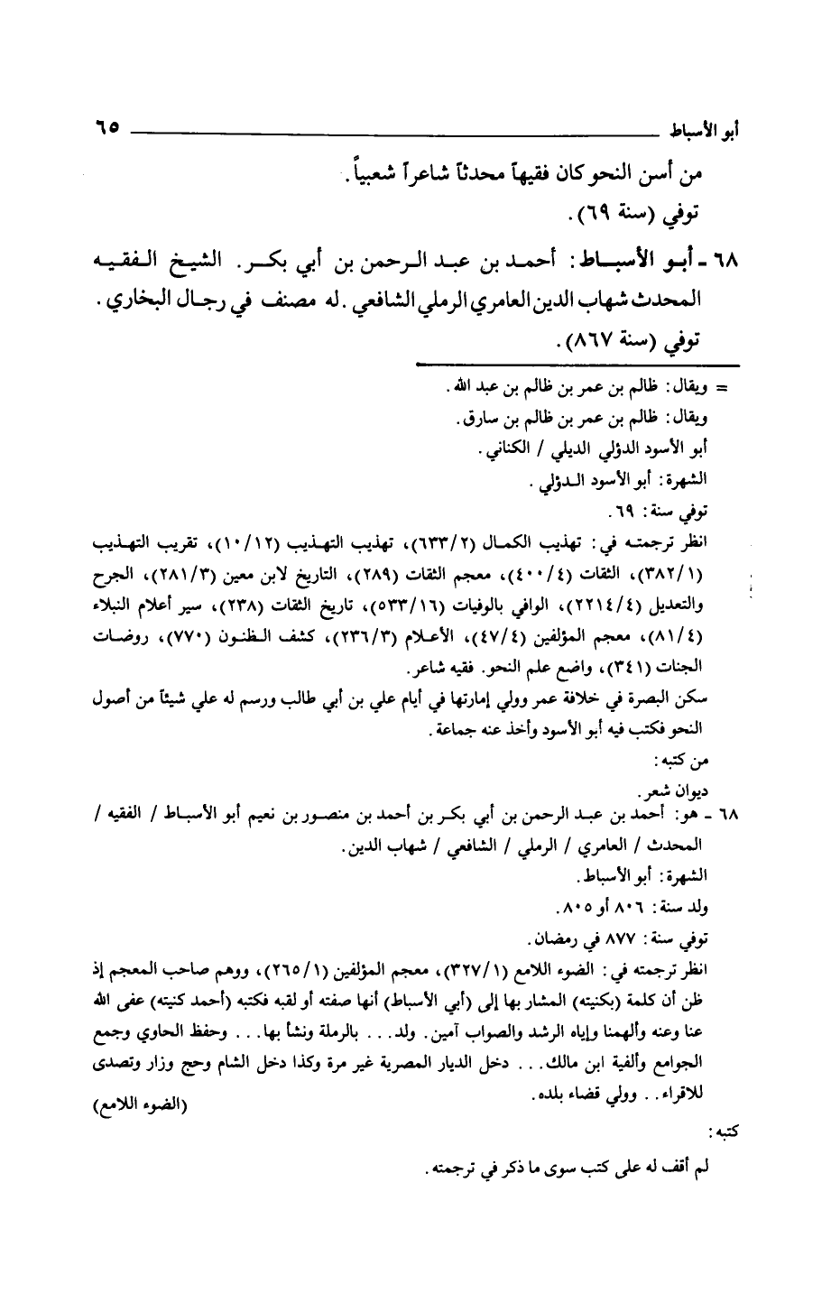 أبو الأسباط: أحمد بن عبد الرحمن بن أبي بكر. الشيخ الفقيه المحدث شهاب الدين العامري الرملي الشافعي. له مصنف في رجال البخاري.