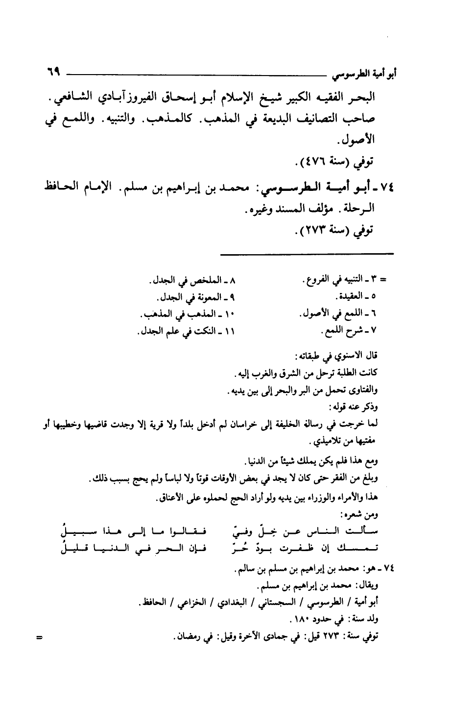 أبو أمية الطرسوسي: محمد بن إبراهيم بن مسلم. الإمام الحافظ الرحلة. مؤلف المسند وغيره.