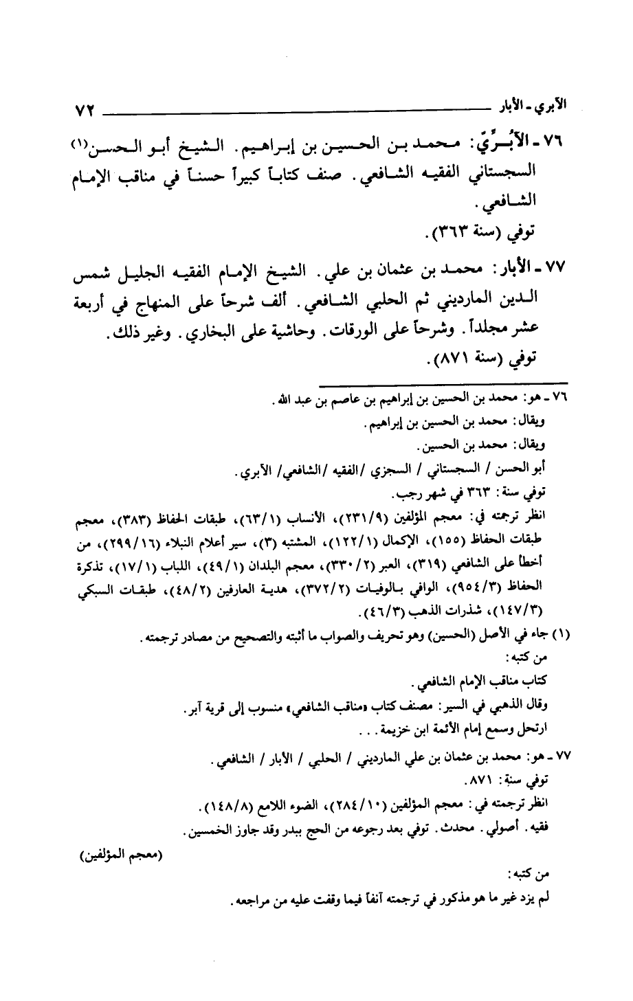 الآبري: محمد بن الحسين بن إبراهيم. الشيخ أبو الحسن السجستاني الفقيه الشافعي. صنف كتاباً كبيراً حسناً في مناقب الإمام الشافعي.