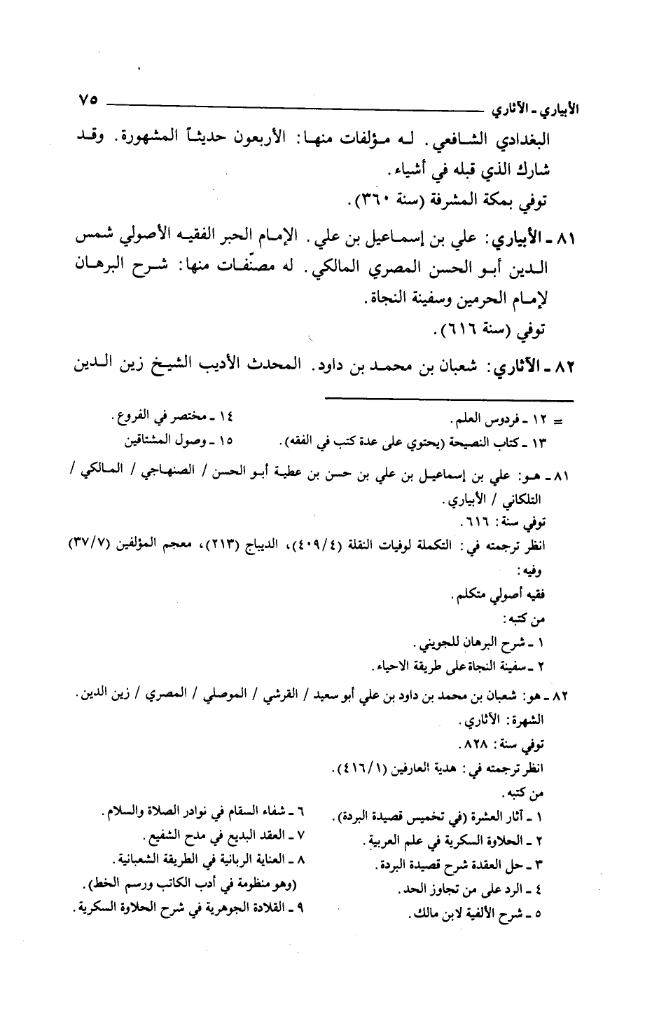 الأبياري: علي بن إسماعيل بن علي. الإمام الحبر الفقيه الأصولي شمس الدين أبو الحسن المصري المالكي. له مصنفات منها: شرح البرهان لإمام الحرمين وسفينة النجاة.