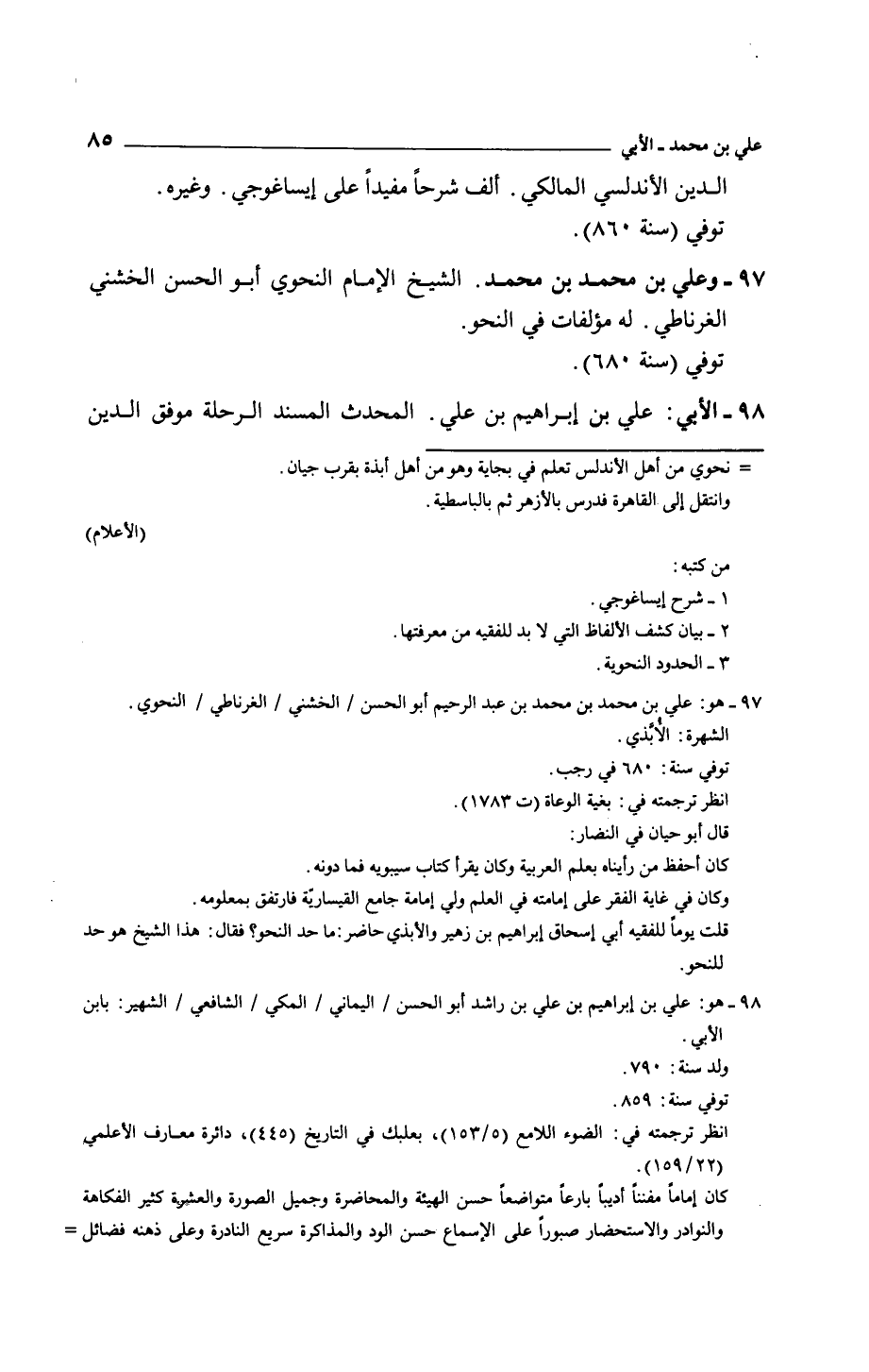 وعلي بن محمد بن محمد. الشيخ الإمام النحوي أبو الحسن الخشني الغرناطي. له مؤلفات في النحو.