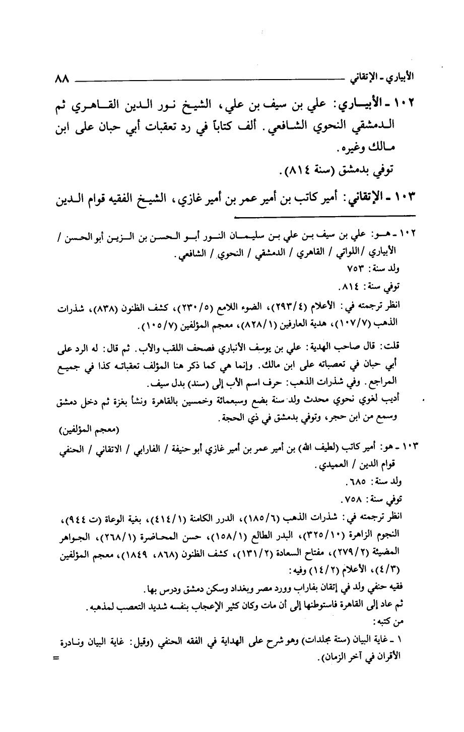 الأبياري: علي بن سيف بن علي، الشيخ نور الدين القاهري ثم الدمشقي النحوي الشافعي. ألف كتاباً في رد تعقبات أبي حبان على ابن مالك وغيره.