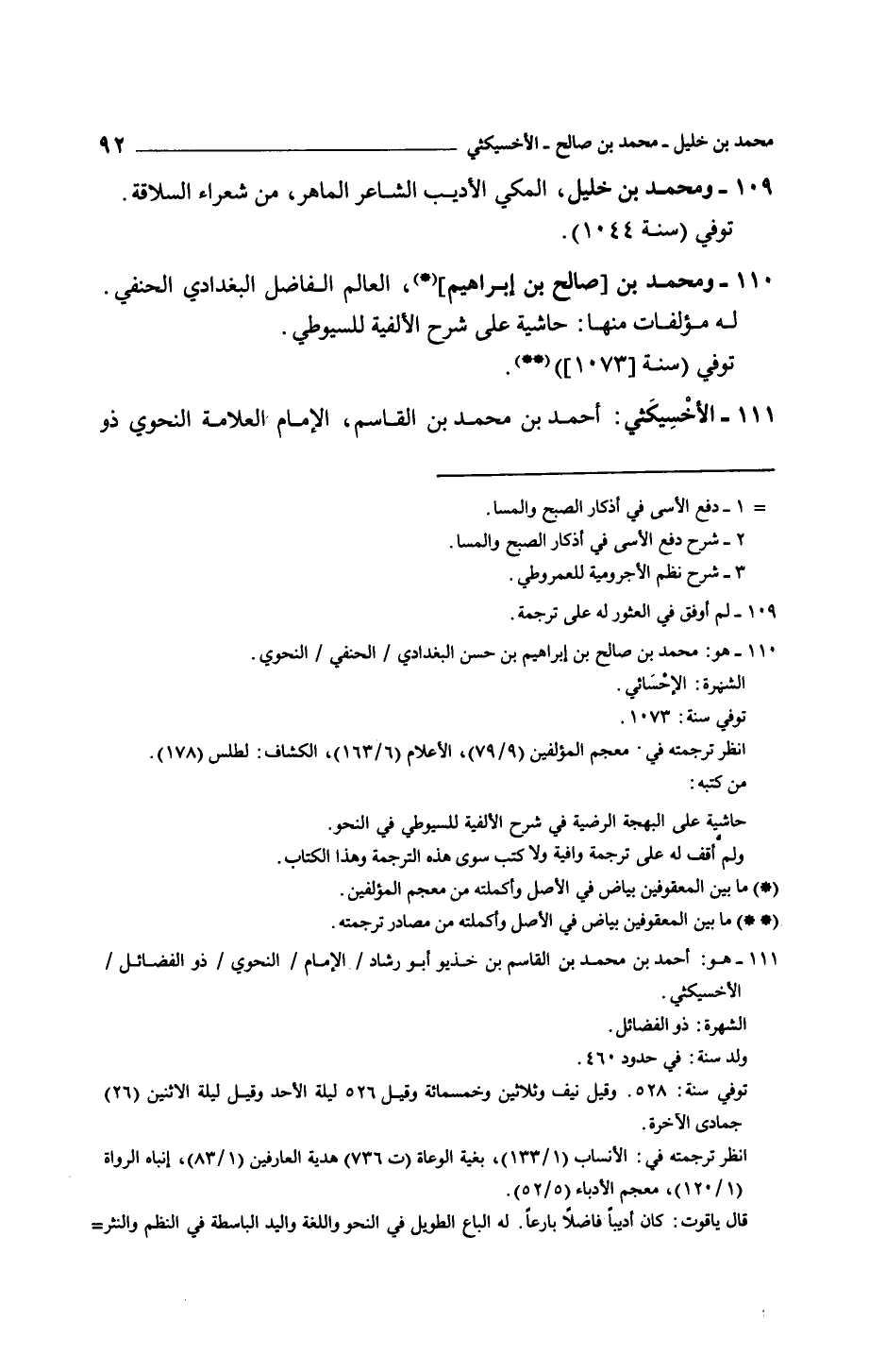ومحمد بن صالح بن إبراهيم، العالم الفاضل البغدادي الحنفي. له مؤلفات منها: حاشية على شرح الألفية للسيوطي.