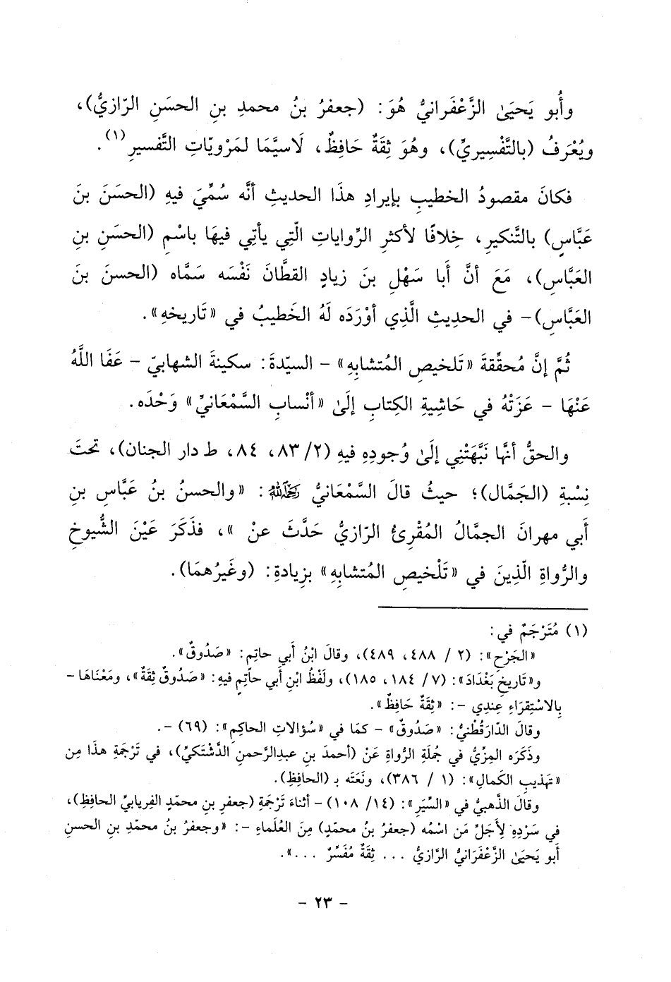 * وكذا الحافظ ابن حجر ـ رحمه الله ـ في «الكافي الشاف» (ص140) مختصراً.