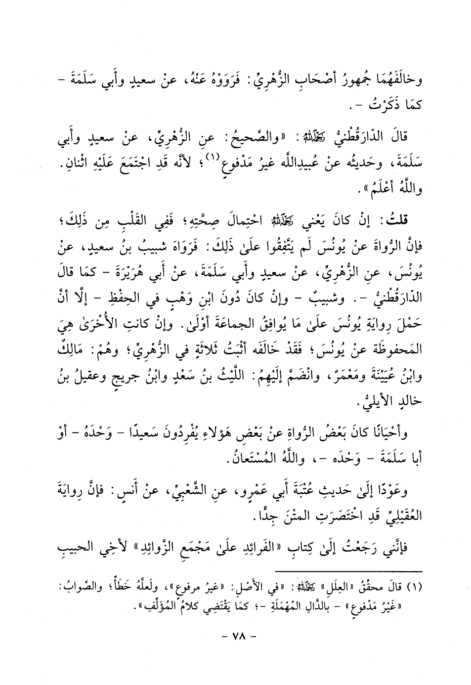 أبي عروبة عن قتادة عن النضر بن أنس (ولم يذكره محمد بن الحسن (¬1) على ما في طبعتي الكامل) عن أنس بن مالك قال: لما أصيب عتبان (¬2) بن مالك في بصره ـ وهو رجل من الأنصار، وكان عقبياً بدرياً ـ بعث إلى رسول الله - صلى الله عليه وسلم - فقال: بأبي أنت وأمي يا رسول الله، لو جئتَ فصليتَ في بيتي أو بقعة من داري، ودعوتَ الله ـ عز وجل ـ لنا بالبركة؟ فقام رسول الله - صلى الله عليه وسلم - في نفر من أصحابه حتى أتى منزله، فصلى في بيته، وخرج فصلى في بقعة من داره، ثم قعد القوم يتحدثون فذكر بعضهم ابن الدخشم، فقالوا: يا رسول الله، ذلك كهف المنافقين ومأواهم ـ وأكثروا فيه ـ حتى رخص لهم رسول الله - صلى الله عليه وسلم - في قتله، ثم قال لهم: " هل يصلي؟ " قالوا: نعم يا رسول الله، صلاةً لا خير فيها أحياناً، ويلبي أحياناً، فقال رسول الله - صلى الله عليه وسلم -: "نُهيت عن قتل المصلين، إنه من يشهد أن لا إله إلا الله مخلصا بها، يموت على ذلك، حرَّمه الله على النار ".