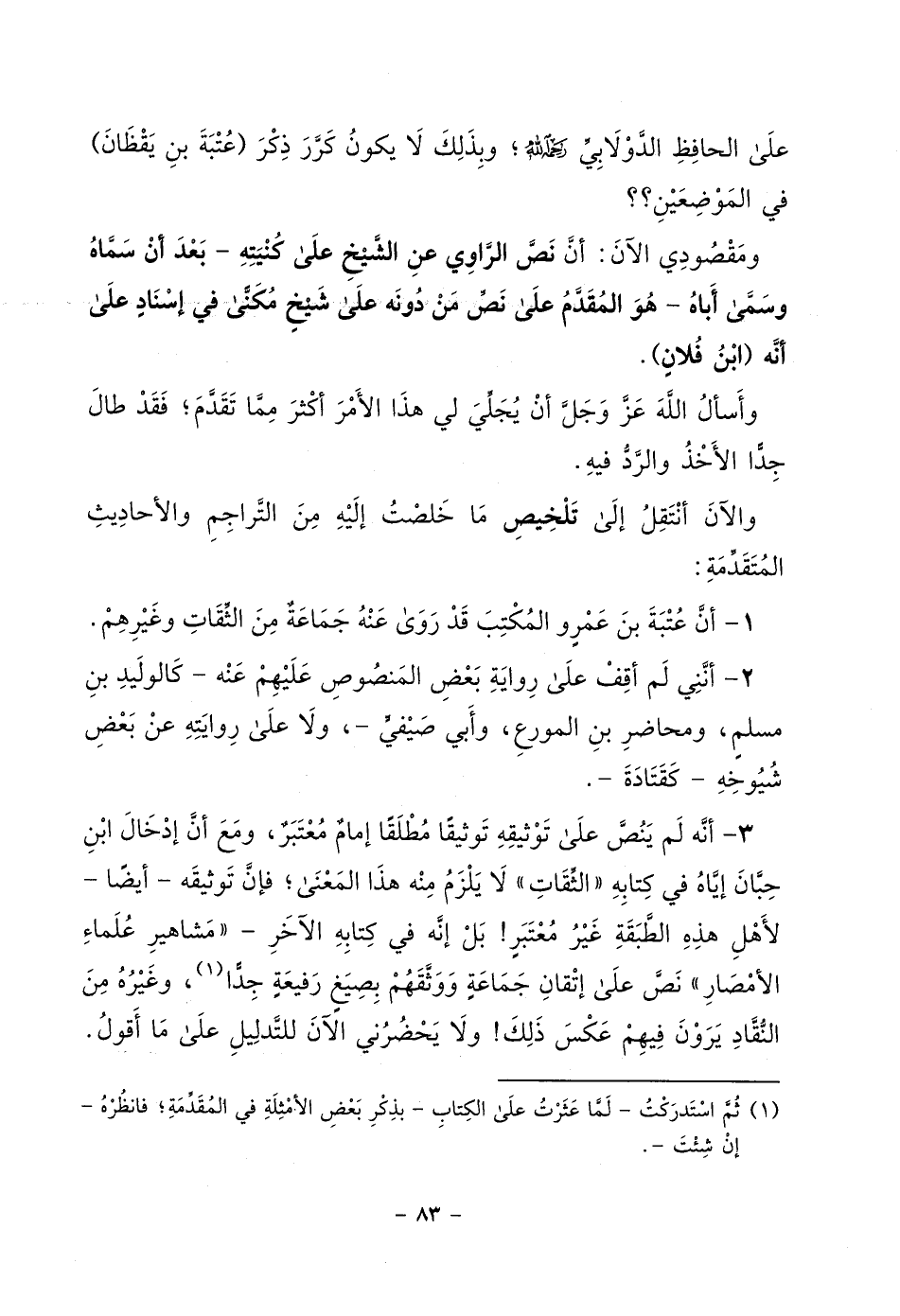 المنافقين، يستأذنه فيه فجهر رسول الله - صلى الله عليه وسلم - بكلامه، فقال: " أليس يشهد أن لا إله إلا الله؟ " قال: بلى، ولكن لا شهادة له. قال: " أليس يشهد أني رسول الله؟ " قال: بلى، ولا شهادة له. قال: " أليس يصلى؟ " قال: بلى. ولا صلاة له. قال: " أولئك الذين نهيت عنهم ". وعنه البيهقي (3/367، 8/196) . وهو مُعلٌّ بالإرسال فقد رواه البيهقي من طريق مالك عن الزهري عن عطاء بن يزيد الليثي عن عبيد الله بن عدي بن الخيار مرسلاً. وانظر "التمهيد" (10/149 ـ150، 161: 168) تدرك علته والله المستعان.