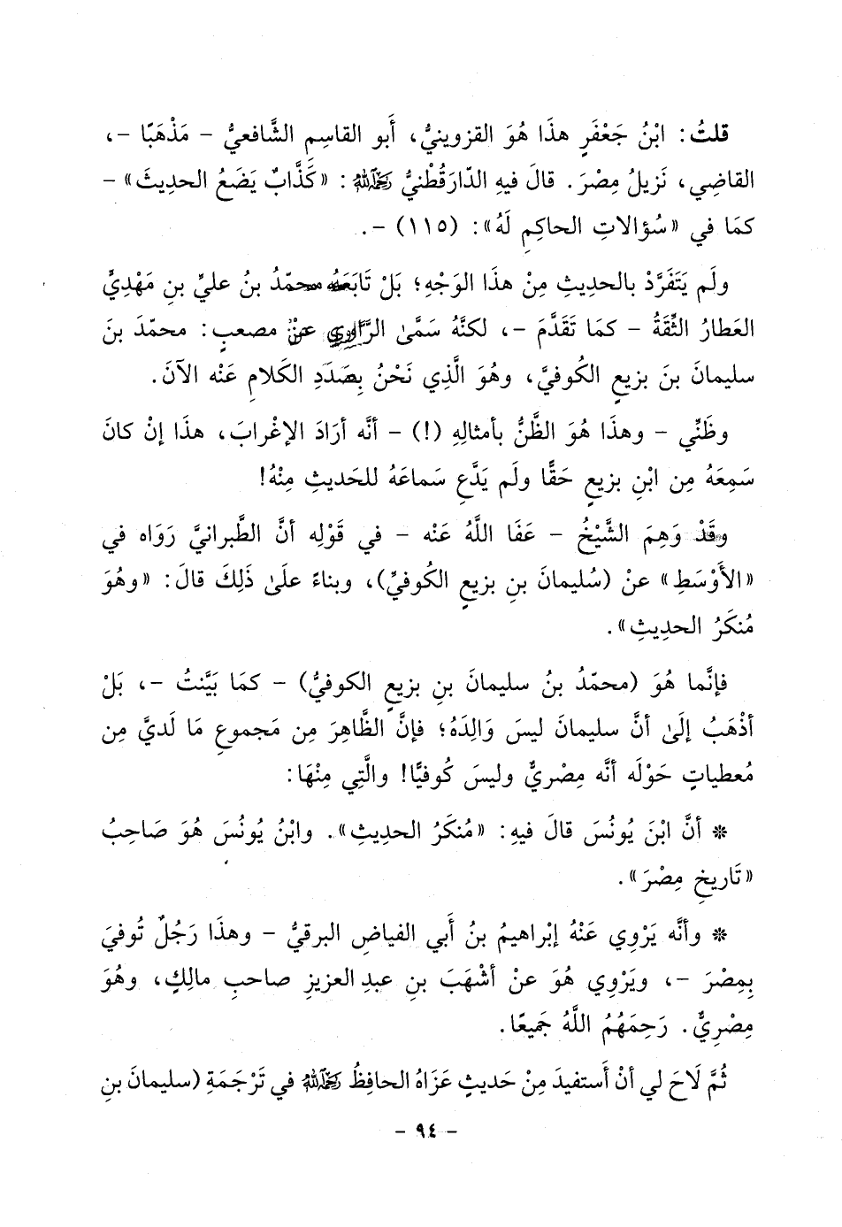 5 ـ الفضيل بن عياض عند الترمذي (2892) ، وتقدم لفظه، وهو شاذ بلا ريب. والراوي عن فضيل فيه: هريم بن مسعر الترمذي قضيته تشبه قضية موسى بن خالد الحلبي ـ شيخ الدارمي، وإن وصوفه بأنه (خادم الفضيل بن عياض) . فالله أعلم ممن الوهم، لكنه متابع في الجملة لمن تقدم ذكرهم.