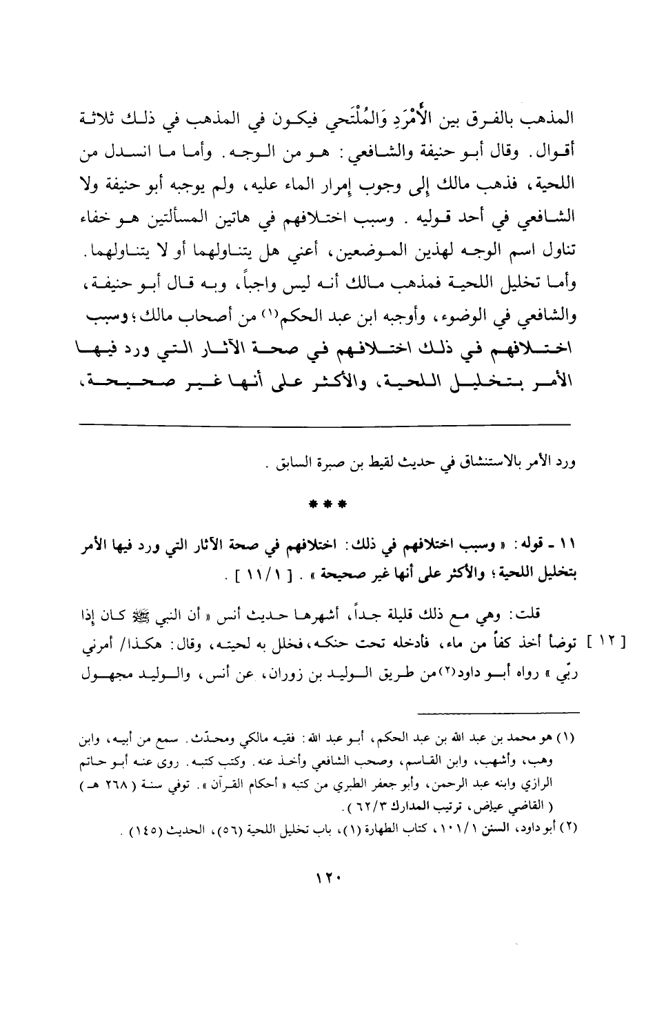 11 - قوله: "وسبب اختلافهم في ذلك: اختلافهم في صحة الآثار التي ورد فيها الأمر بتخليل اللحية؛ والأكثر على أنها غير صحيحة".