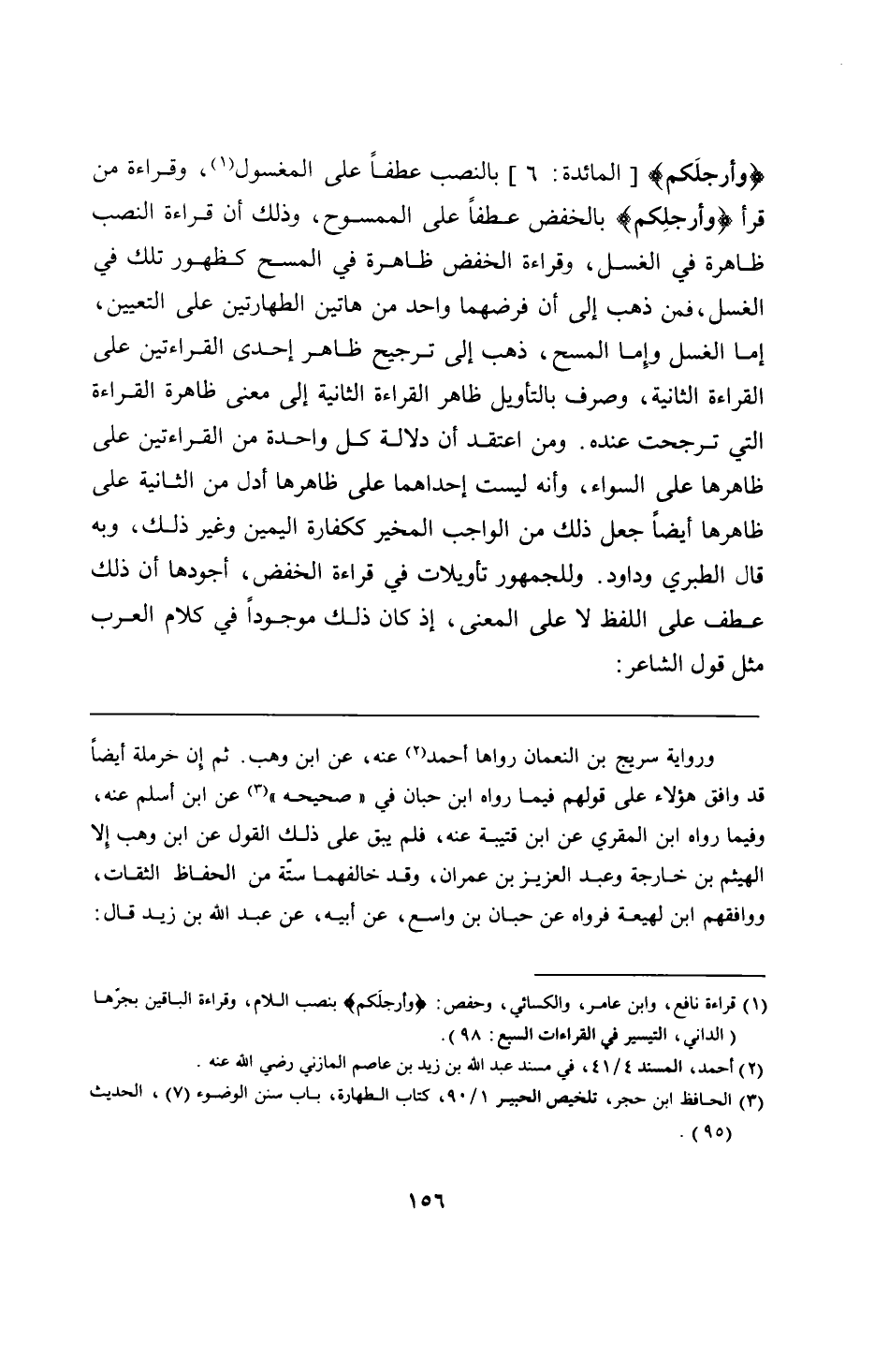 ورواية سريج بن النعمان رواها أحمد عنه، عن ابن وهب. ثم إن حرملة أيضًا قد وافق هؤلاء على قولهم فيما رواه ابن حبان في "صحيحه" عن ابن أسلم عنه، وفيما رواه ابن المقري عن ابن قتيبة عنه، فلم يبق على ذلك القول عن ابن وهب إِلا الهيثم بن خارجة وعبد العزيز بن عمران، وقد خالفهما ستّة من الحفاظ الثقات، ووافقهم ابن لهيعة فرواه عن حبان بن واسع، عن أبيه، عن عبد الله بن زيد قال:
