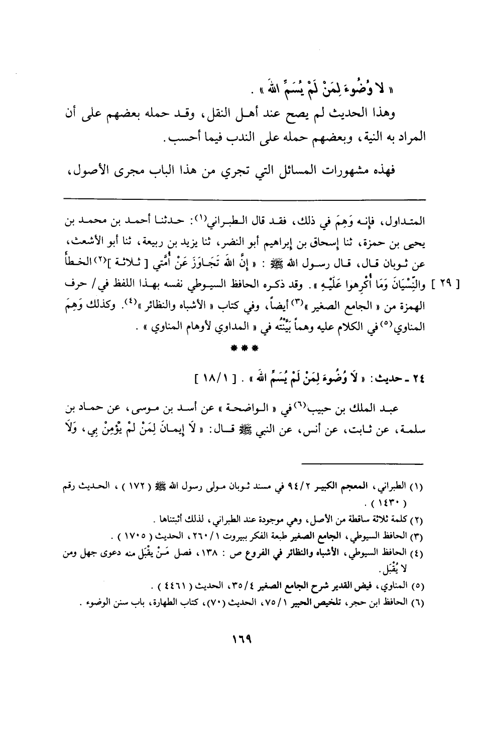 24 - حديث: "لَا وُضُوءَ لِمَنْ لَمْ يُسَمِّ الله".