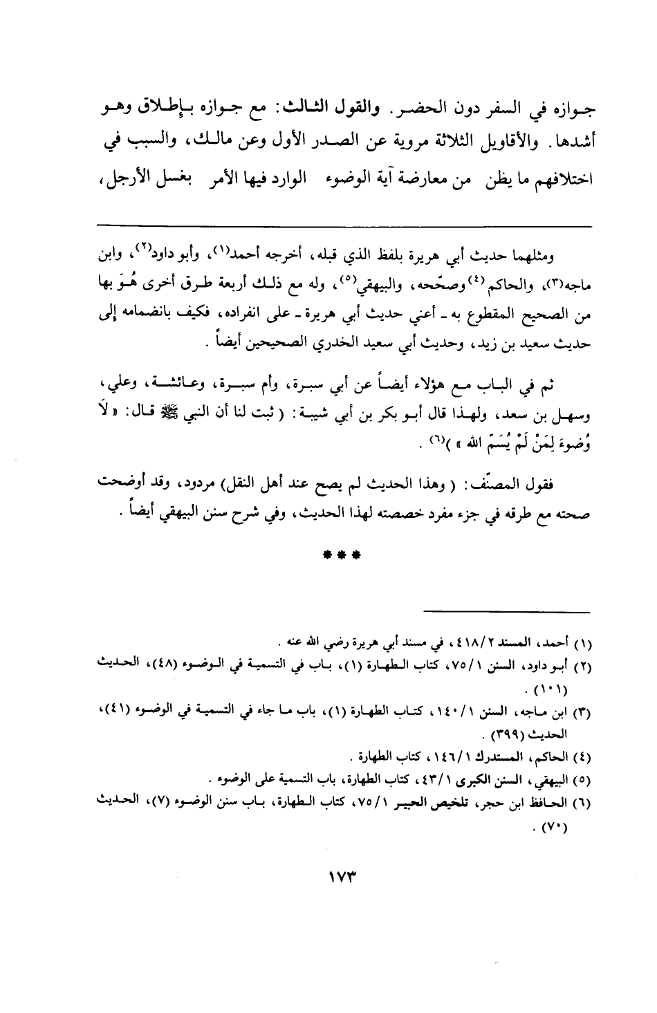 ثم في الباب مع هؤلاء أيضًا عن أبي سبرة، وأم سبرة، وعائشة، وعلي، وسهل بن سعد، ولهذا قال أبو بكر بن أبي شيبة: (ثبت لنا أن النبي - صلى الله عليه وسلم - قال: "لاَ وُضوءَ لِمَنْ لَمْ يُسَمّ الله").