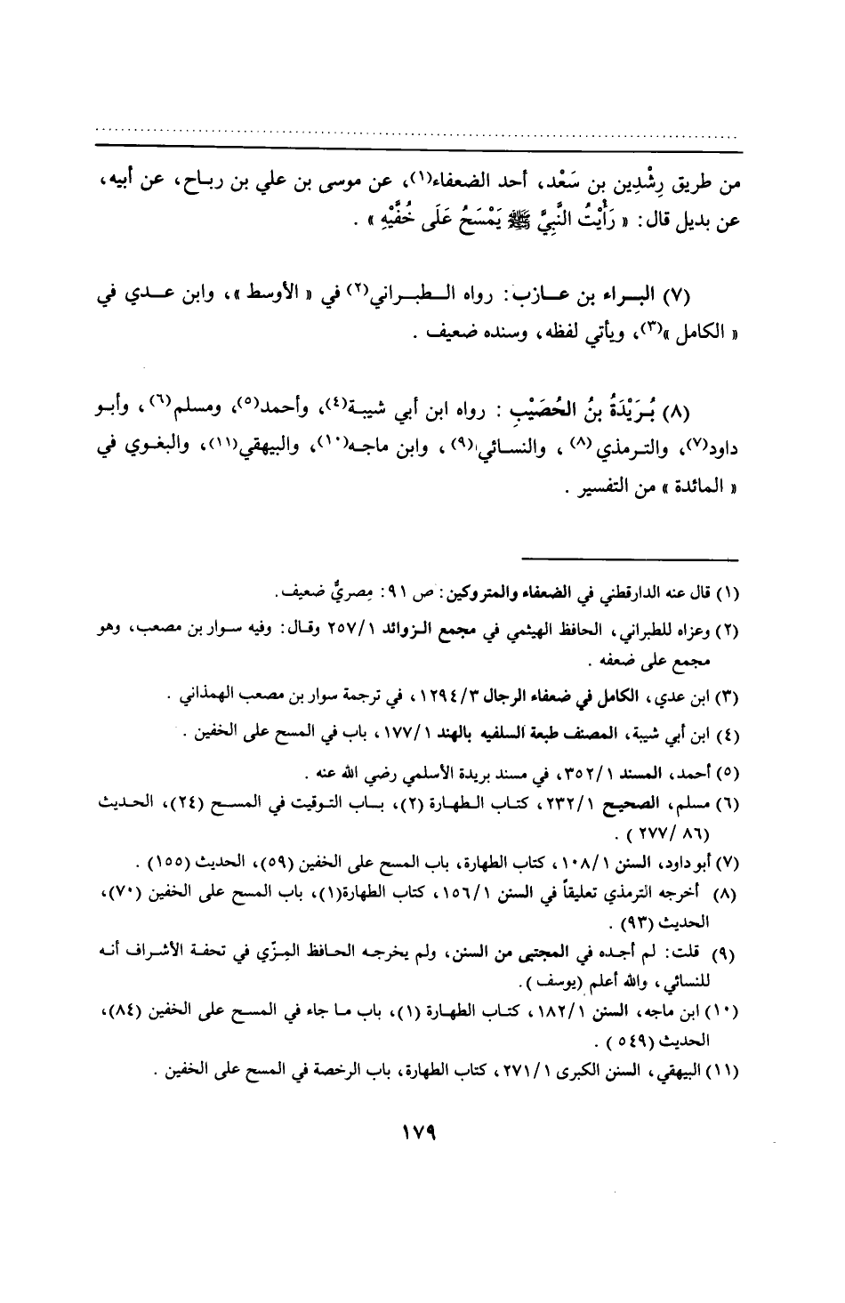 من طريق رِشْدِين بن سَعْد، أحد الضعفاء، عن موسى بن علي بن رباح، عن أبيه، عن بديل قال: "رَأْيْتُ النَّبِىَّ - صلى الله عليه وسلم - يَمْسَحُ عَلَى خُفَّيْهِ".