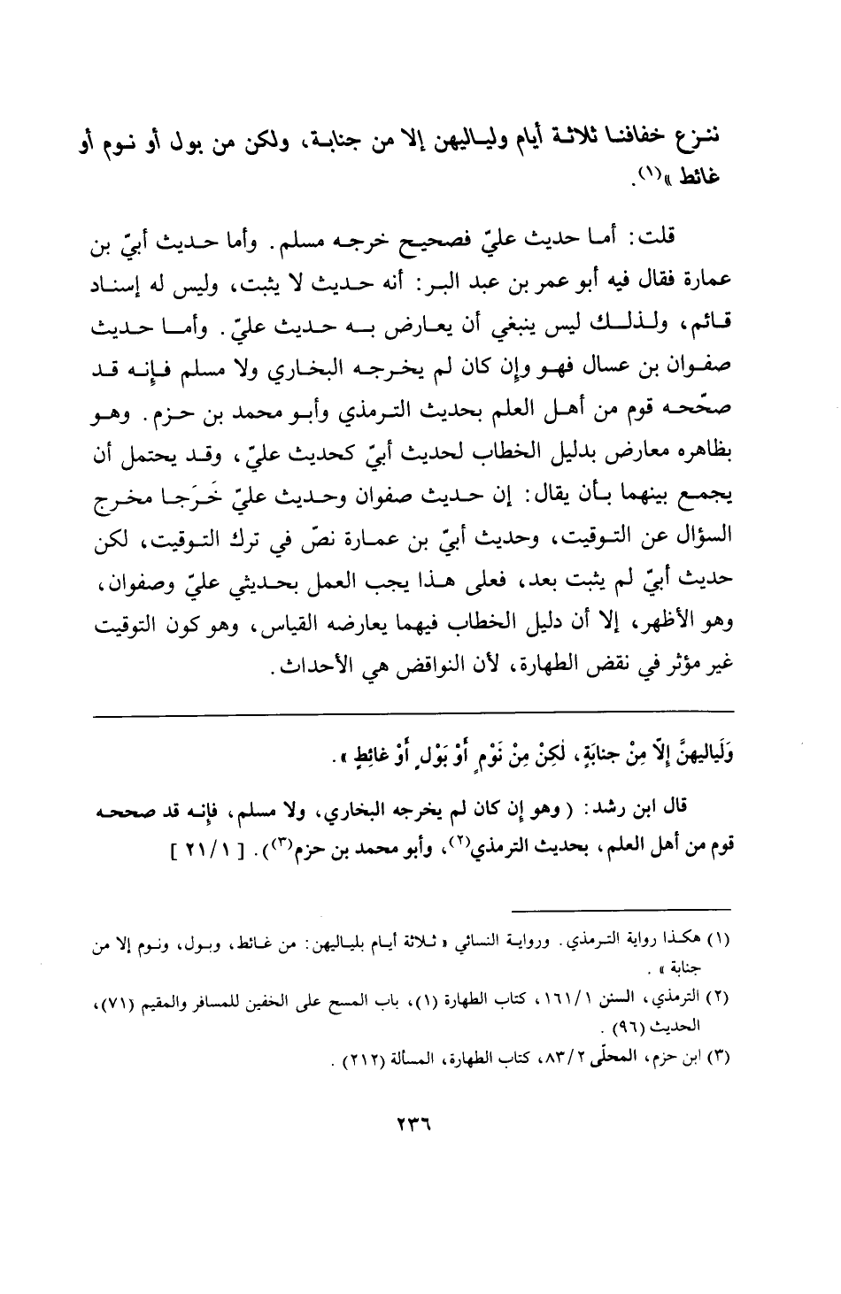 وَلَياليهنَّ إِلَّا مِنْ جنابَة، لكِنْ مِنْ نَوْمٍ أوْ بَوْلٍ أوْ غائِطٍ".