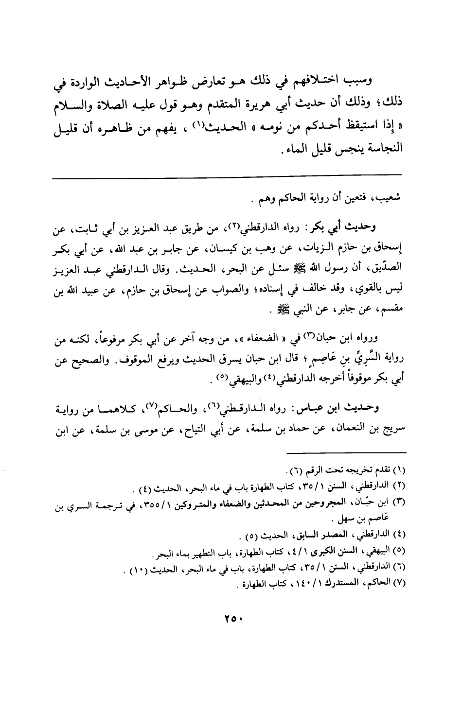 وحديث أبي بكر: رواه الدارقطني، من طريق عبد العزيز بن أبي ثابت، عن إِسحاق بن حازم الزيات، عن وهب بن كيسان، عن جابر بن عبد الله، عن أبي بكر الصدّيق، أن رسول الله - صلى الله عليه وسلم - سئل عن البحر، الحديث. وقال الدارقطني عبد العزيز ليس بالقوي، وقد خالف في إِسناده؛ والصواب عن إسحاق بن حازم، عن عبيد الله بن مقسم، عن جابر، عن النبي - صلى الله عليه وسلم -.