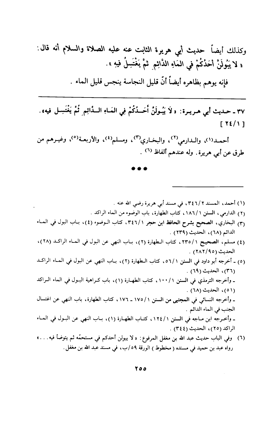 37 - حديث أبي هريرة: "لَا يُبولَنَّ أحَدُكُمْ فِي المَاءِ الدِائِمِ ثُمَّ يَغْتَسِل فيه".