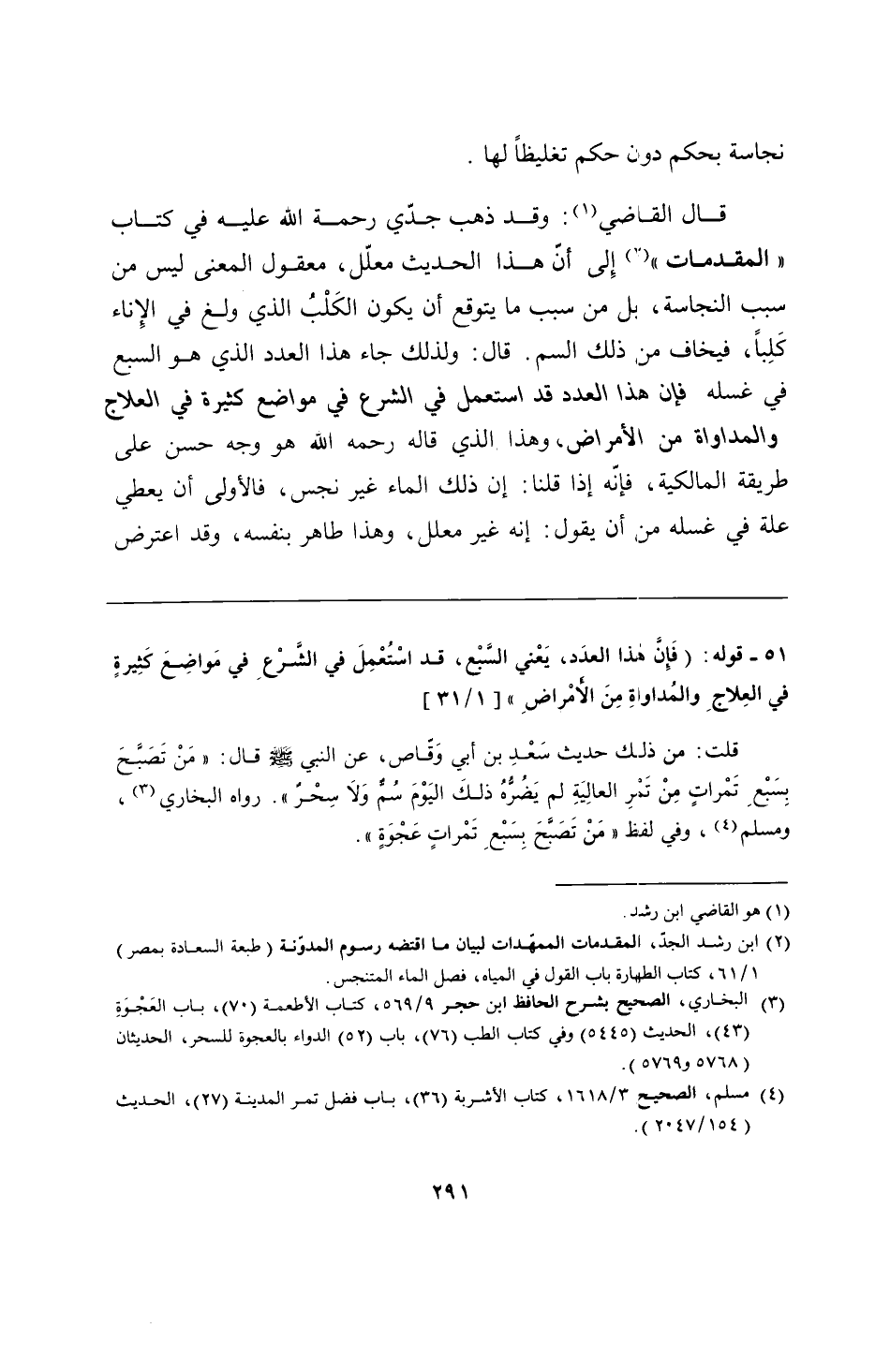 51 - قوله: (فَإِنَّ هذا العدَد، يَعْني السَّبْع، قد اسْتُعْمِلَ في الشَّرْعِ في مَواضِعَ كَثِيرةٍ في العِلاجِ والمُداواةِ مِنَ الأَمْراضِ".