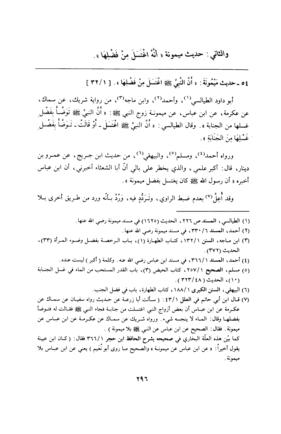 54 - حديث مَيْمُونَةَ: "أنَّ النَّبيَّ - صلى الله عليه وسلم - اغْتَسَلَ مِنْ فَضْلِهَا".